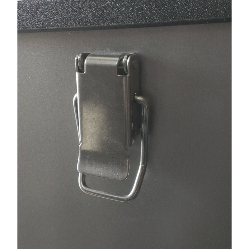 Внешние стенки холодильника изготовлены из окрашенной листовой стали, а углы защищены пластиковыми накладками. Испаритель находится за алюминиевой поверхностью, которая защищает его от протирания и случайного повреждения. Для его переноски по бокам установлены металлические ручки.