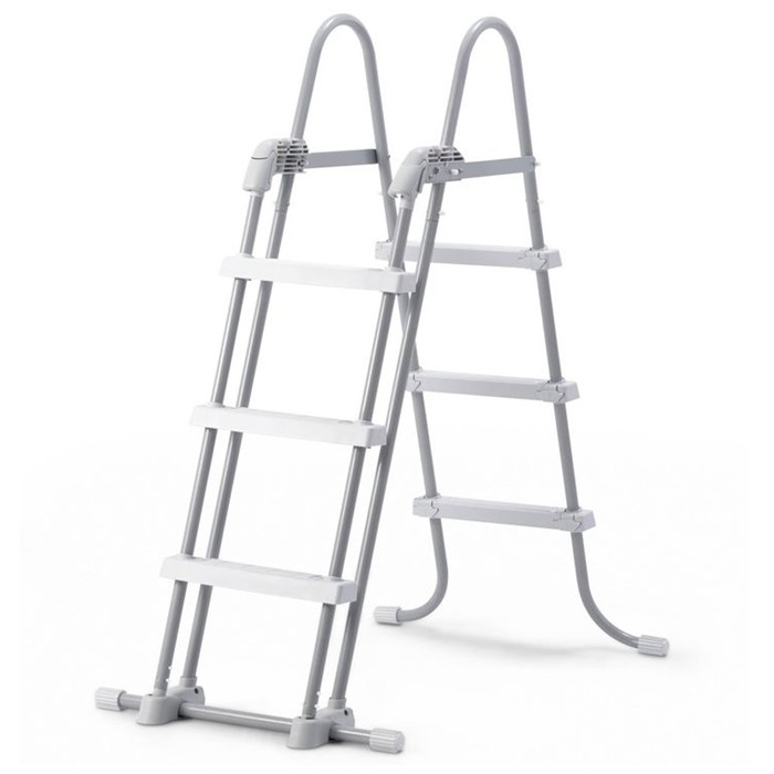 Лестница для бассейна легко собирается, изготовлена из стали с влагозащищенным покрытием, ступеньки сделаны из усиленного ABS пластика. Стойки лестницы имеют специальные наконечники, защищающие дно бассейна от повреждения.