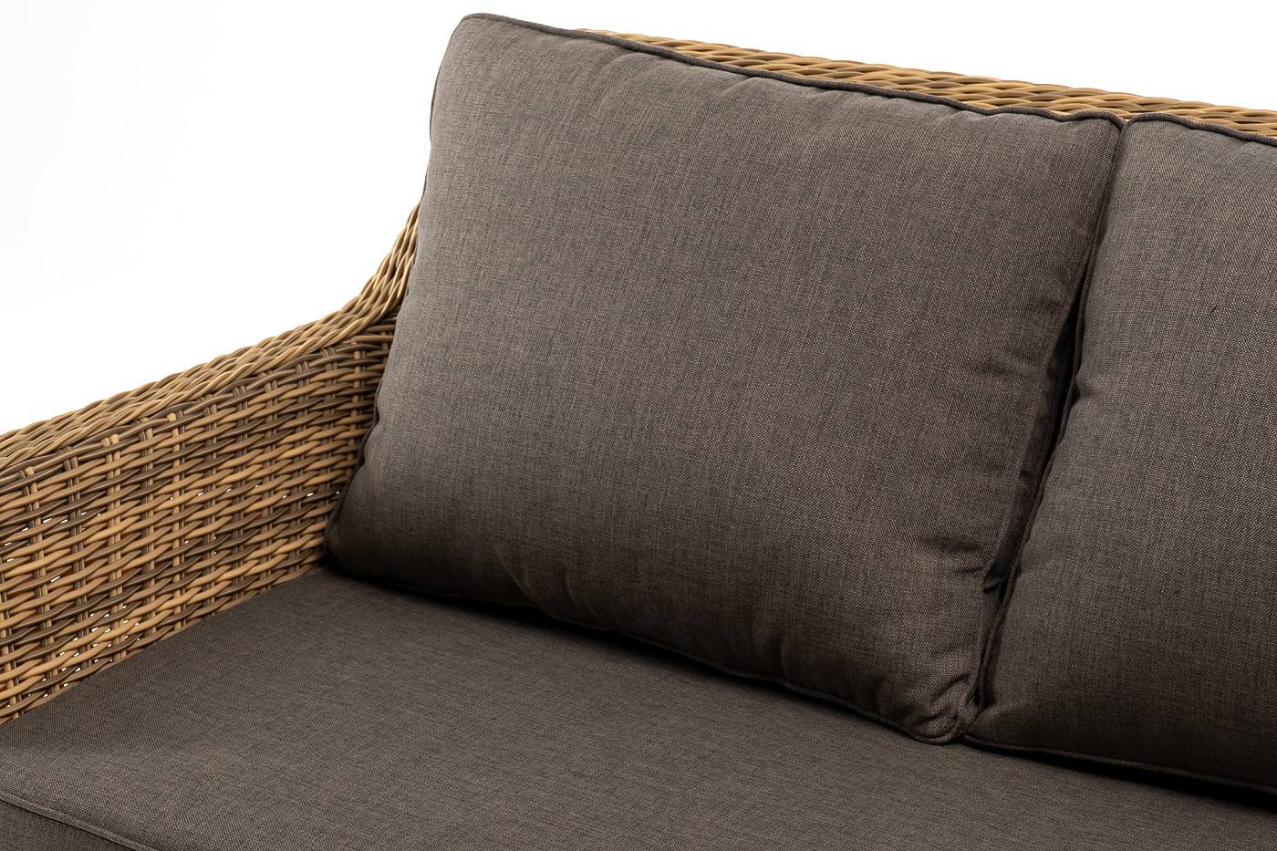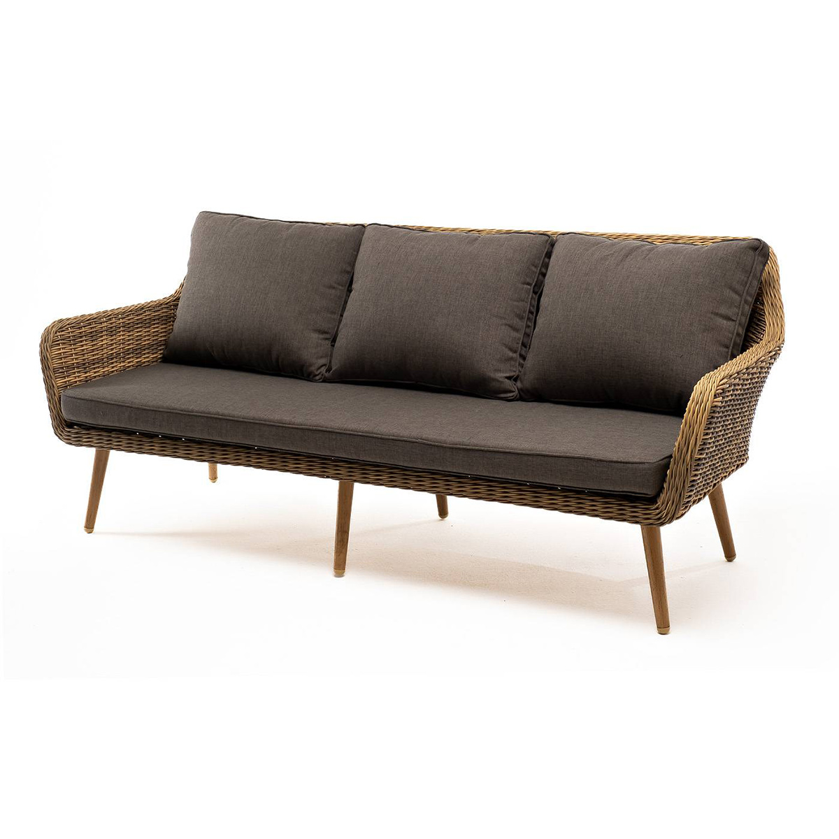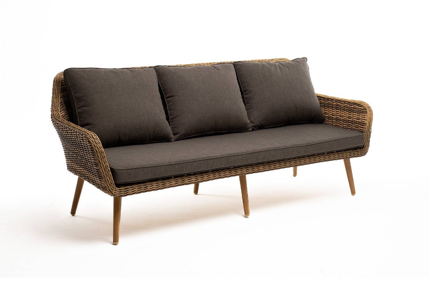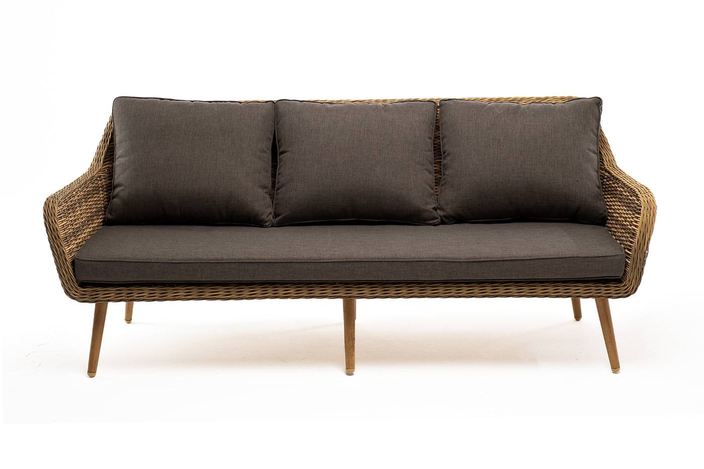 Диван «Прованс» идеально подходит для размещения трех человек. Он имеет алюминиевый каркас, который выдерживает повышенные нагрузки.Размер модели – 1900×800×770 мм. Для оплетки каркаса используется высококачественный искусственный ротанг. Мебель выполнена в соломенном оттенке.Трехместный диван дополняют мягкие подушки в серо-коричневом цвете со съёмными чехлами. Тканевые изделия выполнены из прочного полиэстера плотностью 230гр/м2. Материал имеет влагоотталкивающую пропитку.