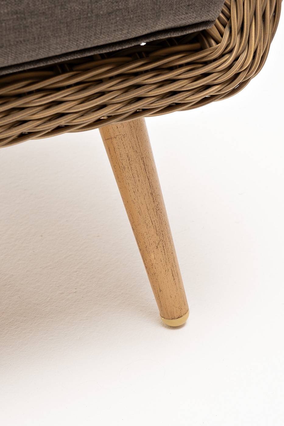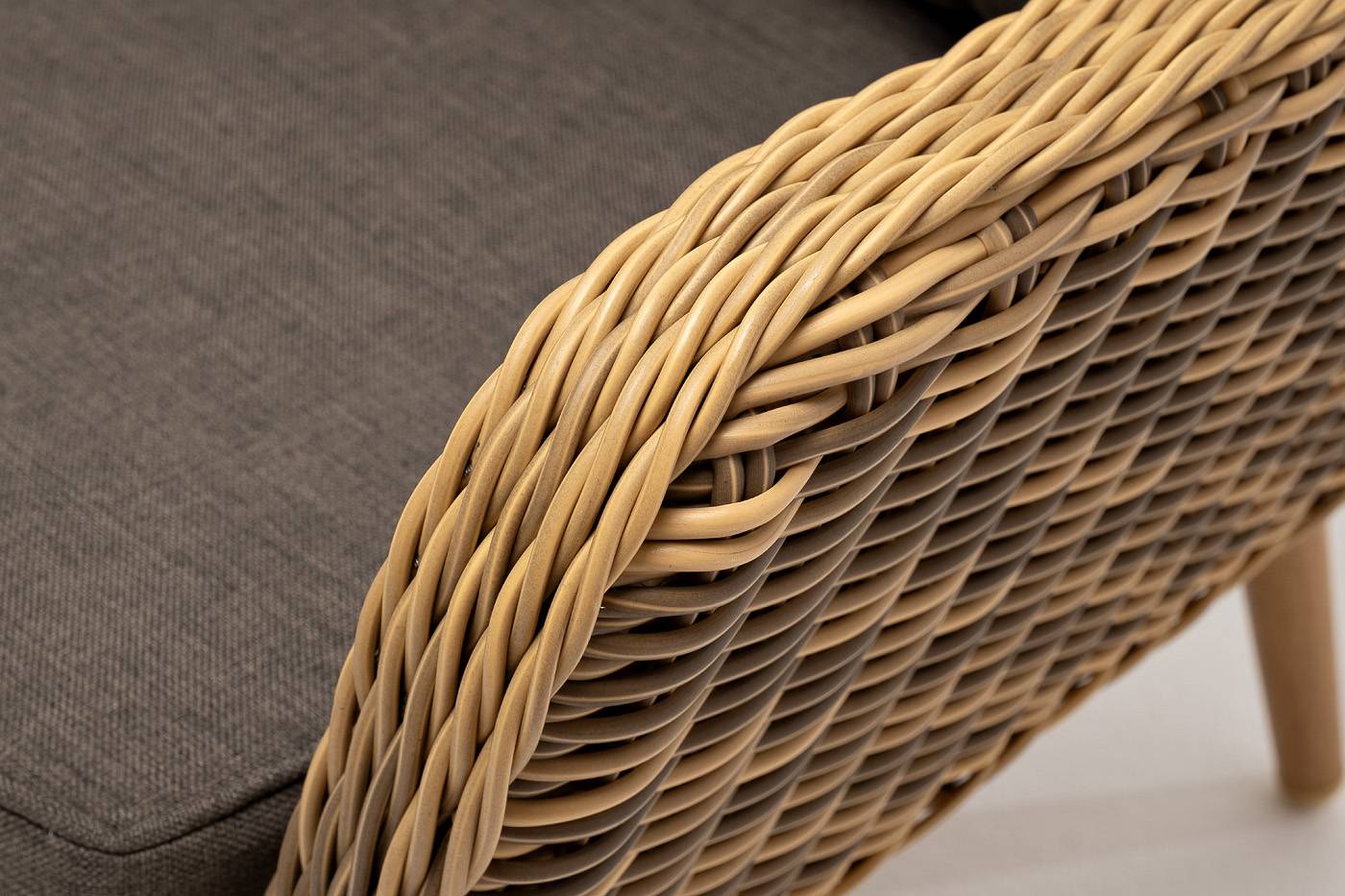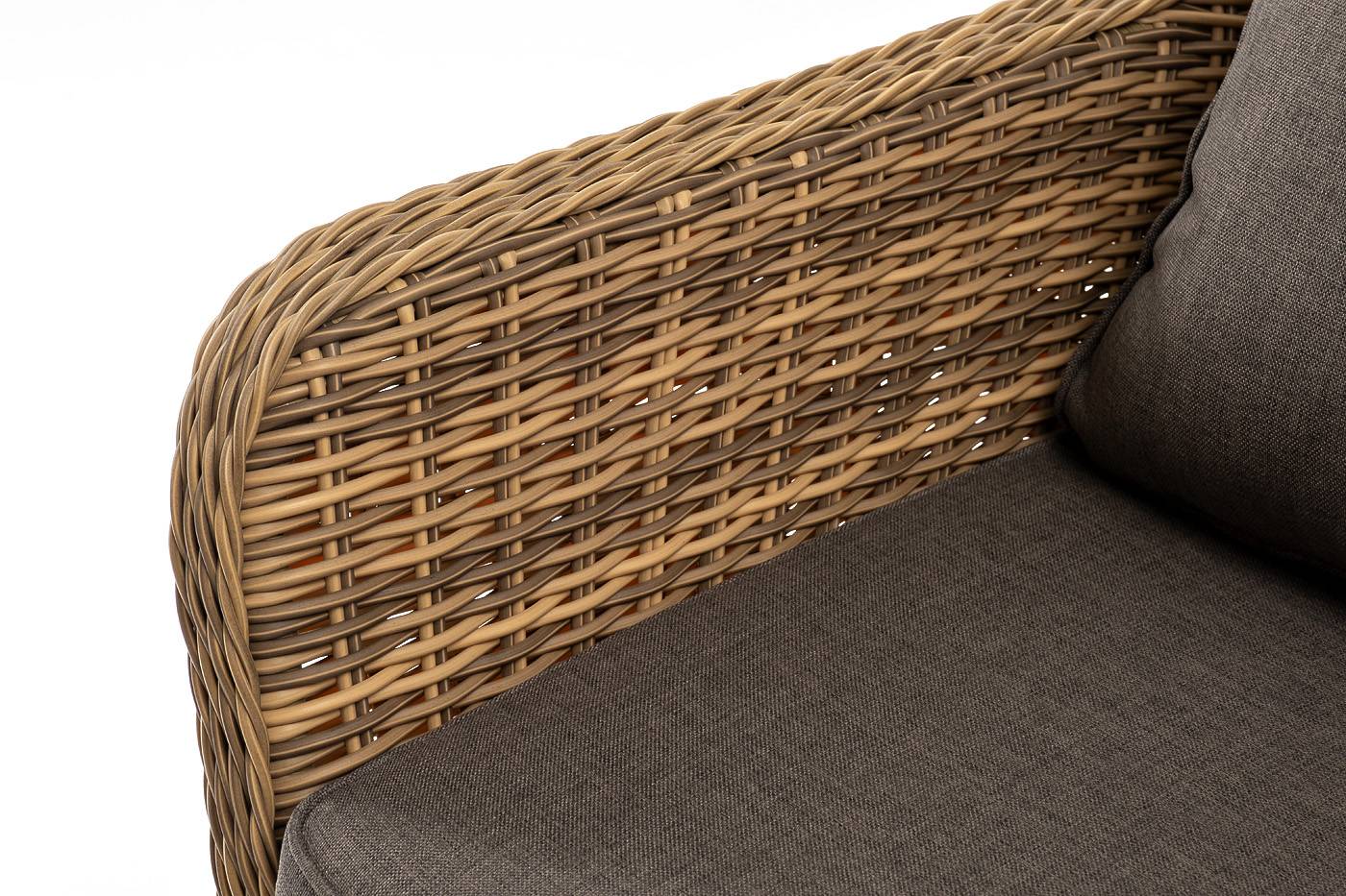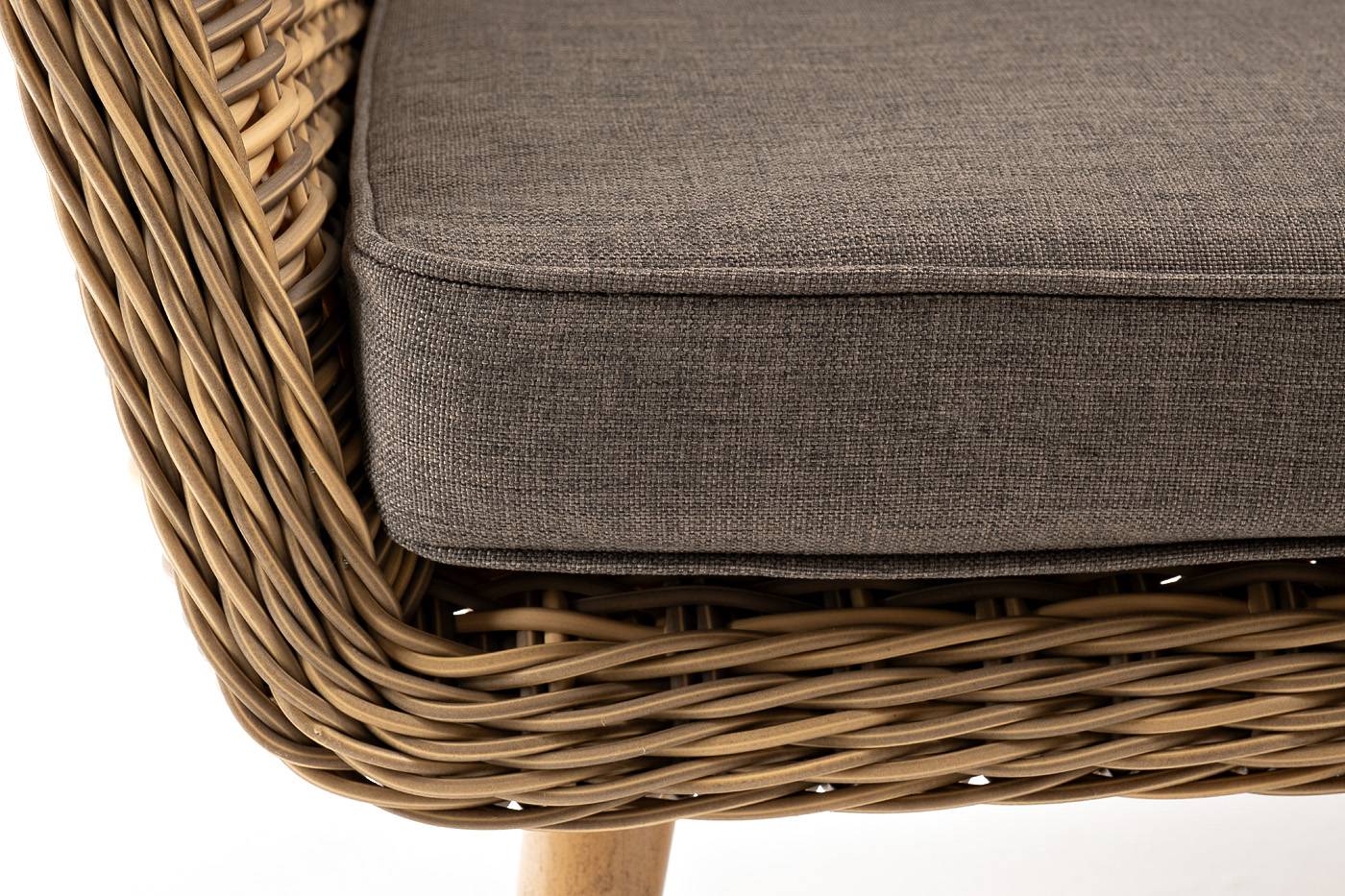 Диван «Прованс» идеально подходит для размещения трех человек. Он имеет алюминиевый каркас, который выдерживает повышенные нагрузки.Размер модели – 1900×800×770 мм. Для оплетки каркаса используется высококачественный искусственный ротанг. Мебель выполнена в соломенном оттенке.Трехместный диван дополняют мягкие подушки в серо-коричневом цвете со съёмными чехлами. Тканевые изделия выполнены из прочного полиэстера плотностью 230гр/м2. Материал имеет влагоотталкивающую пропитку.