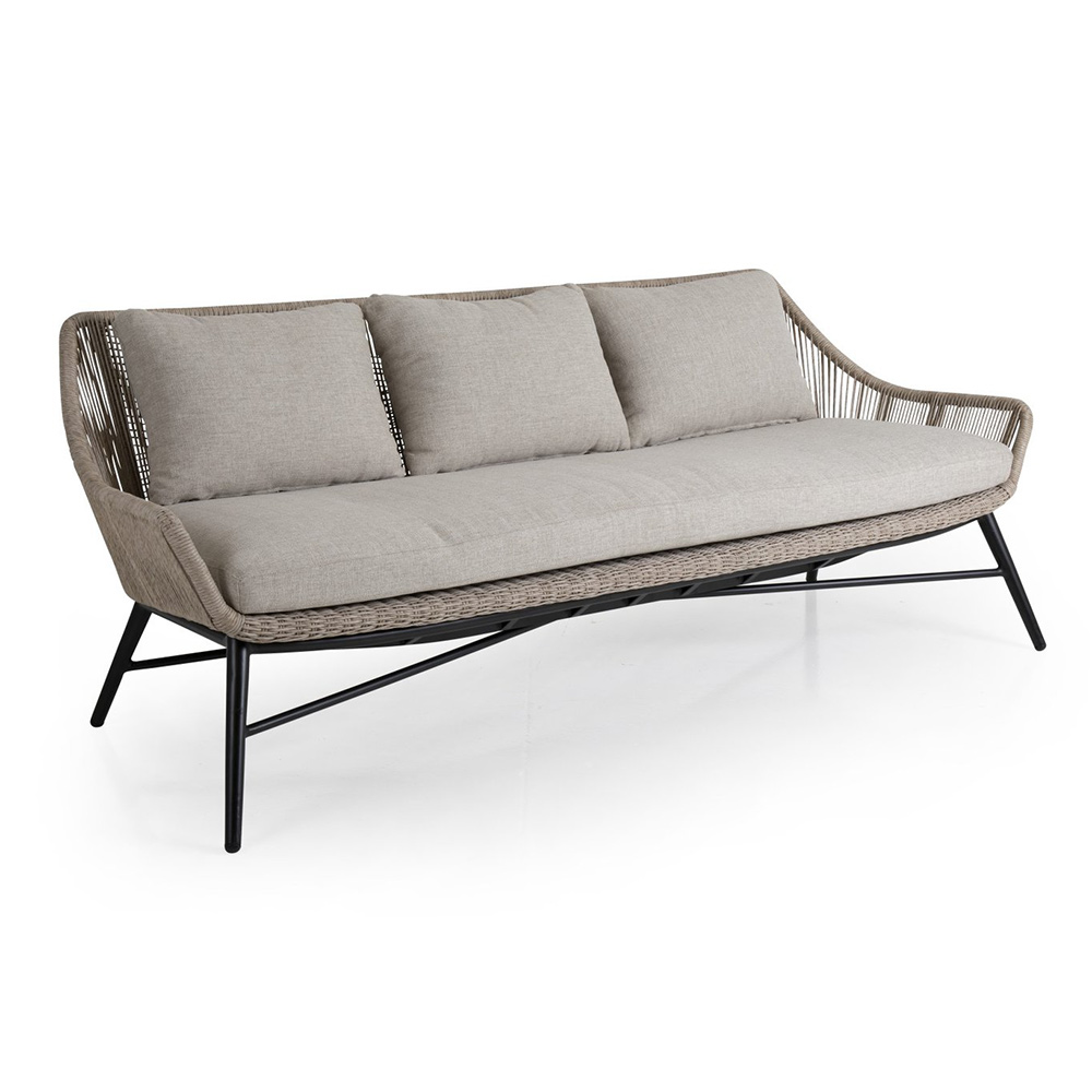 Веревочный ротанг и черный алюминий. Комфортная коллекция с современными закругленными контурами.