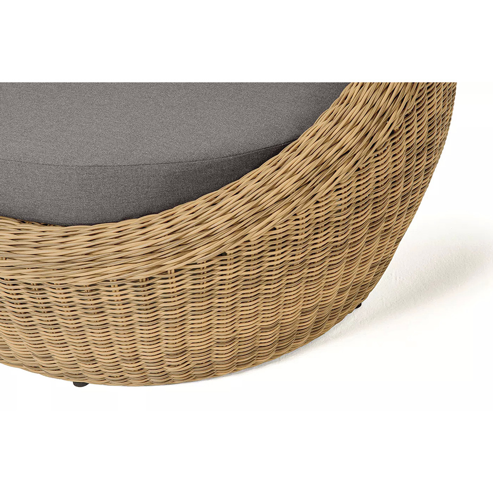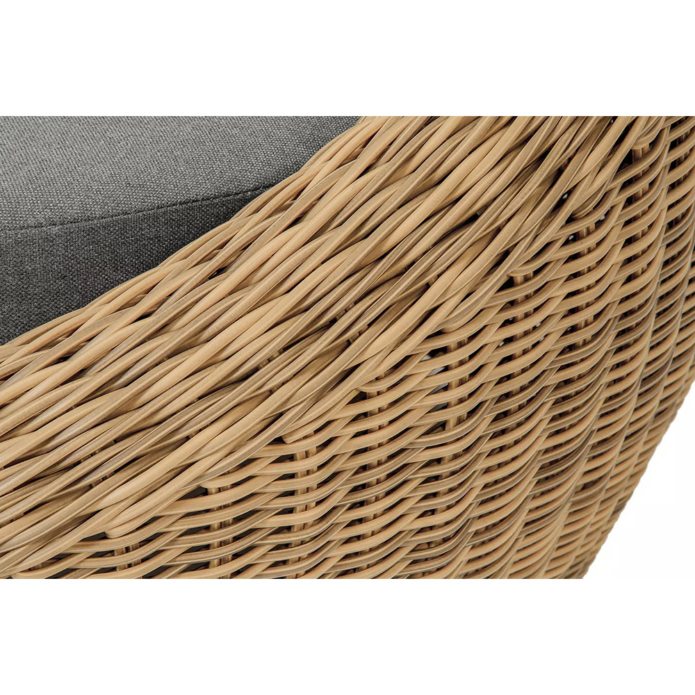 Для оплетки каркаса используется высококачественный искусственный ротанг. Мебель выполнена в соломенном цвете.