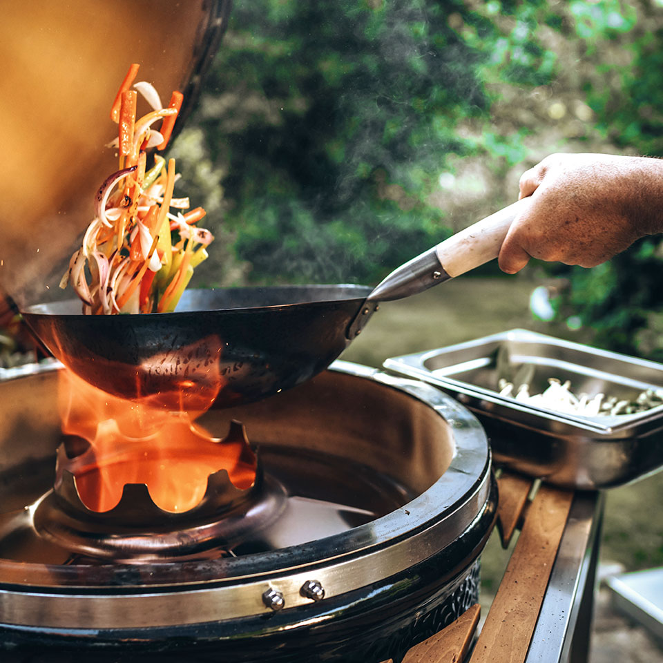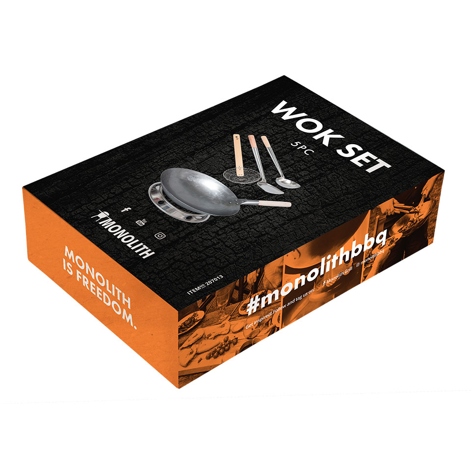 Полный набор аксессуаров для приготовления знаменитой лапши WOK. В комплект входит сковорода-вок, подставка на стол для вока, половник, лопатка для жарки и шумовка для фритюра.