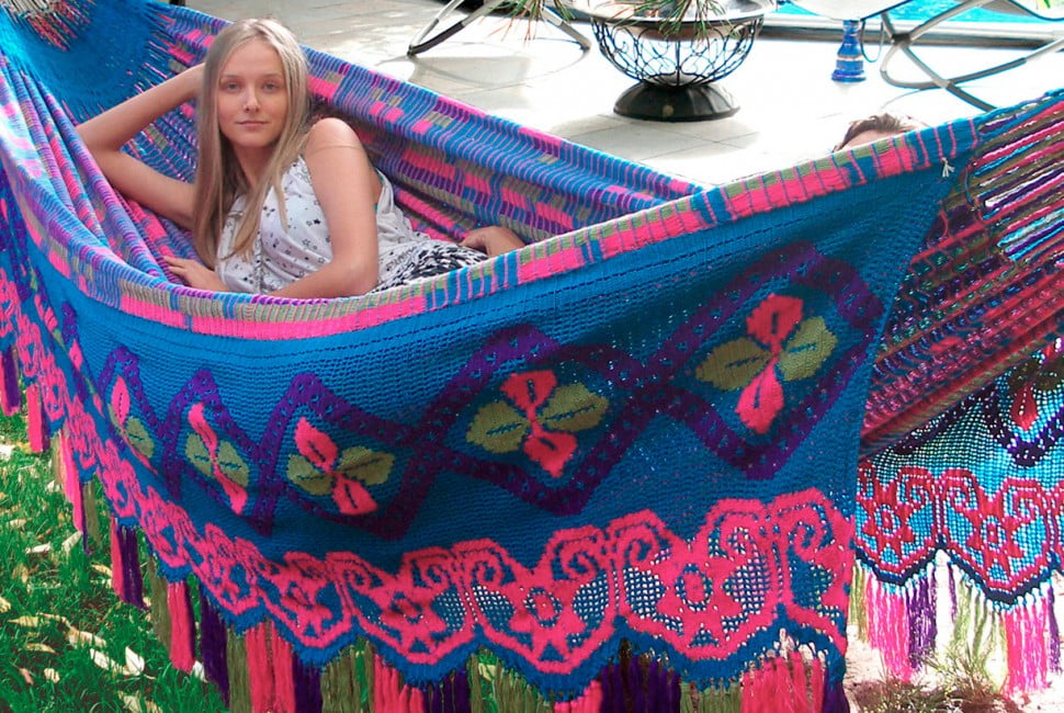 Эксклюзивная коллекция колумбийских гамаков "Sun-Hosinto" и "Chinchorro". Экзотика художественного плетения из хлопка индейскими племенами с севера Колумбии так удивляет тонкой сложной ручной работой, индивидуальным рисунком, красотой и вкусом, что их продукция так сильно отличается, если брать в сравнение современные шезлонги лежаки.Техника плетения изделий из хлопка называется «asonushi», которая очень сложна и тяжела, поэтому на плетение одного гамака может уходить 2-4 месяца в зависимости от сложности рисунка. Нити, полученные из хлопка, окрашиваются в различные цвета красками, полученными из коры деревьев, листьев кустарника и семян растений, поэтому такие гамаки хранят не только энергию природы необычайной красоты, но и тепло талантливых рук мастеров индейцев с севера Колумбии!