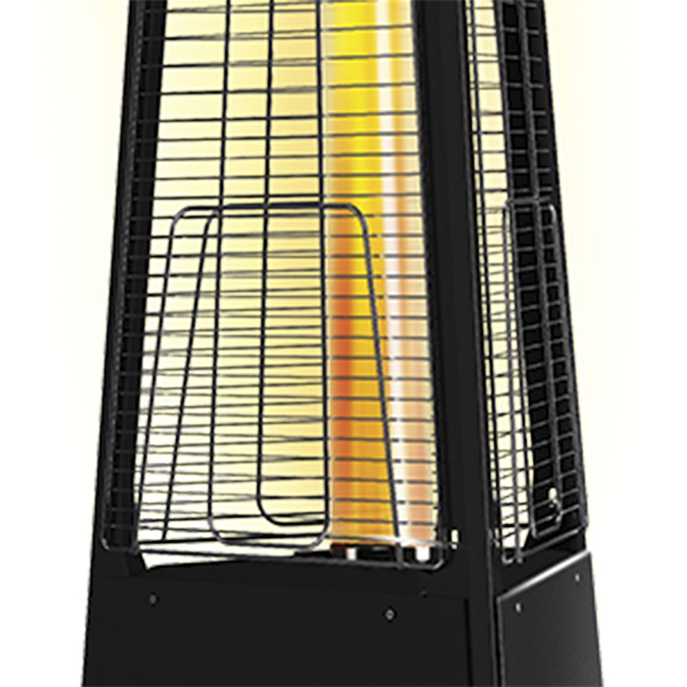 Прибор не только эффективно греет, но и создает впечатляющий визуальный эффект. Внутри термоустойчивой колбы из закаленного стекла горит открытое пламя высотой до 1,5 метра, которое делает атмосферу уюта более выразительной и зрелищной.