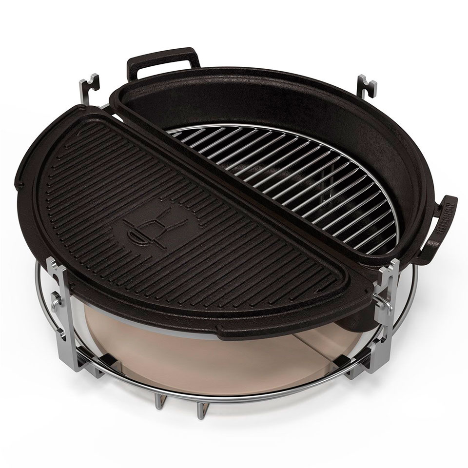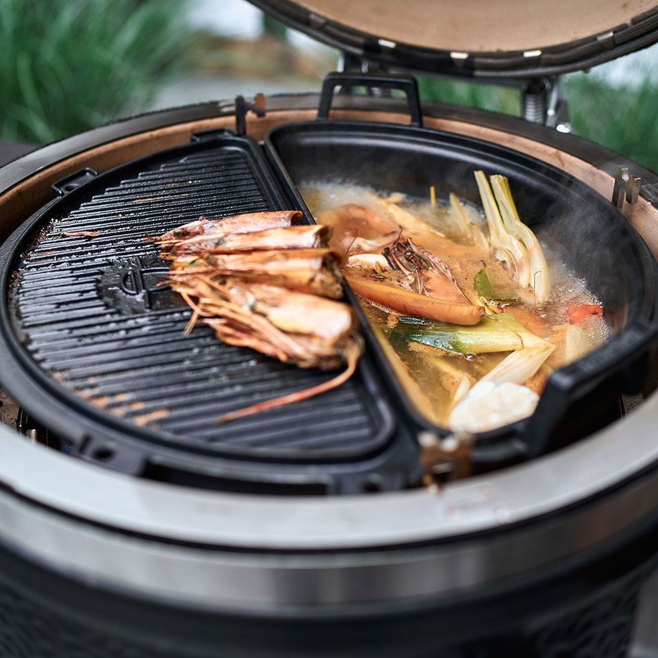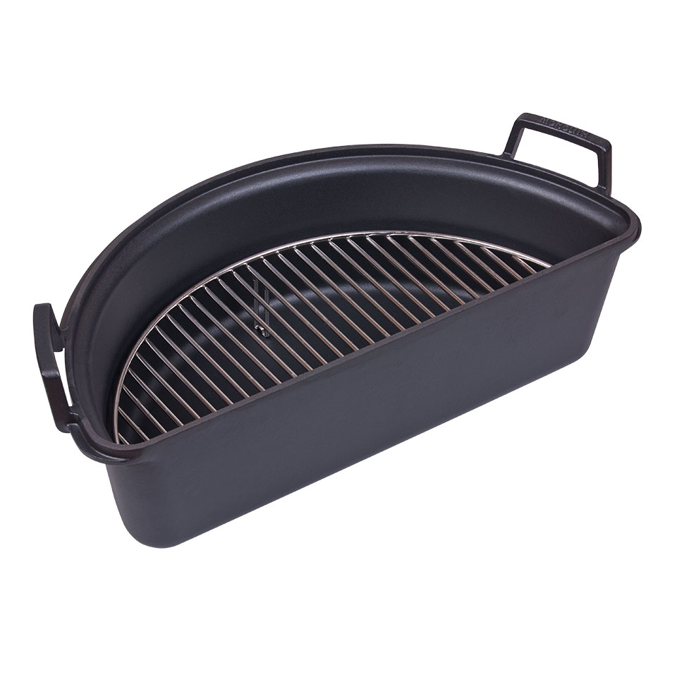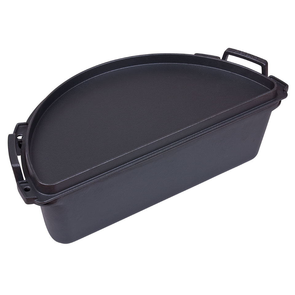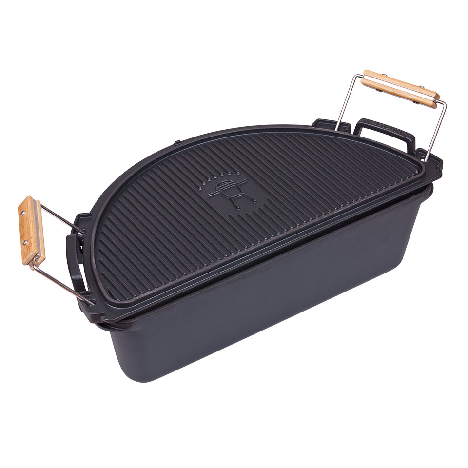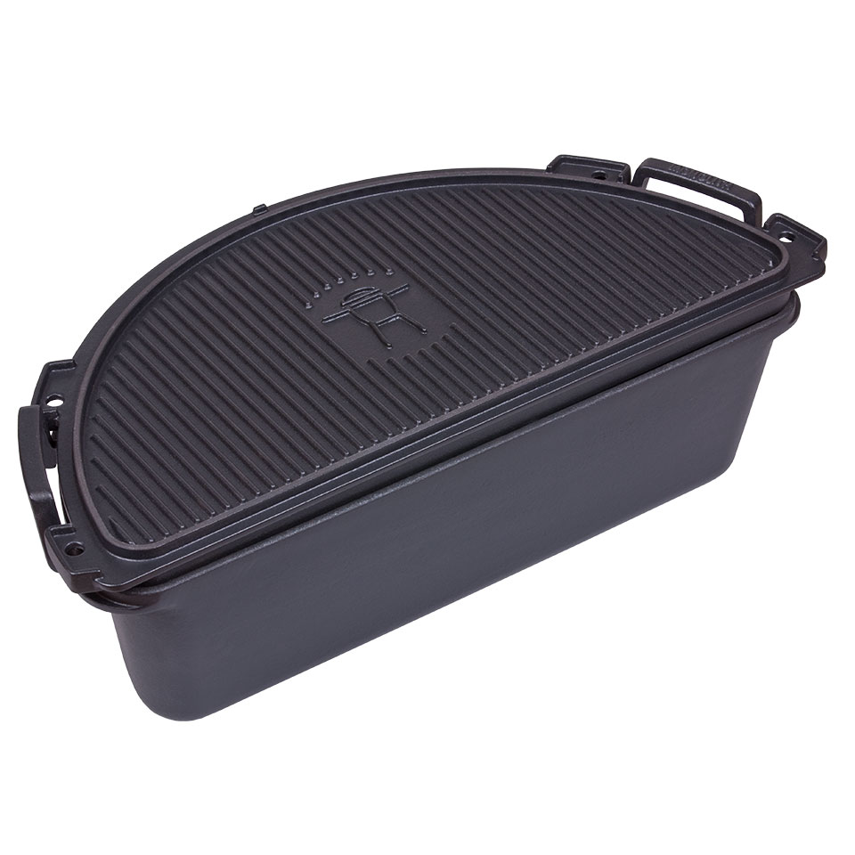 Голландская кастрюля из чугуна – еще один аксессуар, который превращает гриль MONOLITH в идеальную летнюю кухню. Она имеет форму полумесяца – такую же, как и вся система Smart Grid. Крышку кастрюли можно также использовать отдельно как двустороннюю планчу (одна сторона рифленая, а другая гладкая). Внутренняя решетка из нержавеющей стали (входит в комплект) создает второй уровень внутри кастрюли и тем самым наделяет ее дополнительными возможностями. Кастрюля имеет толщину 4 мм и покрыта черной эмалью.