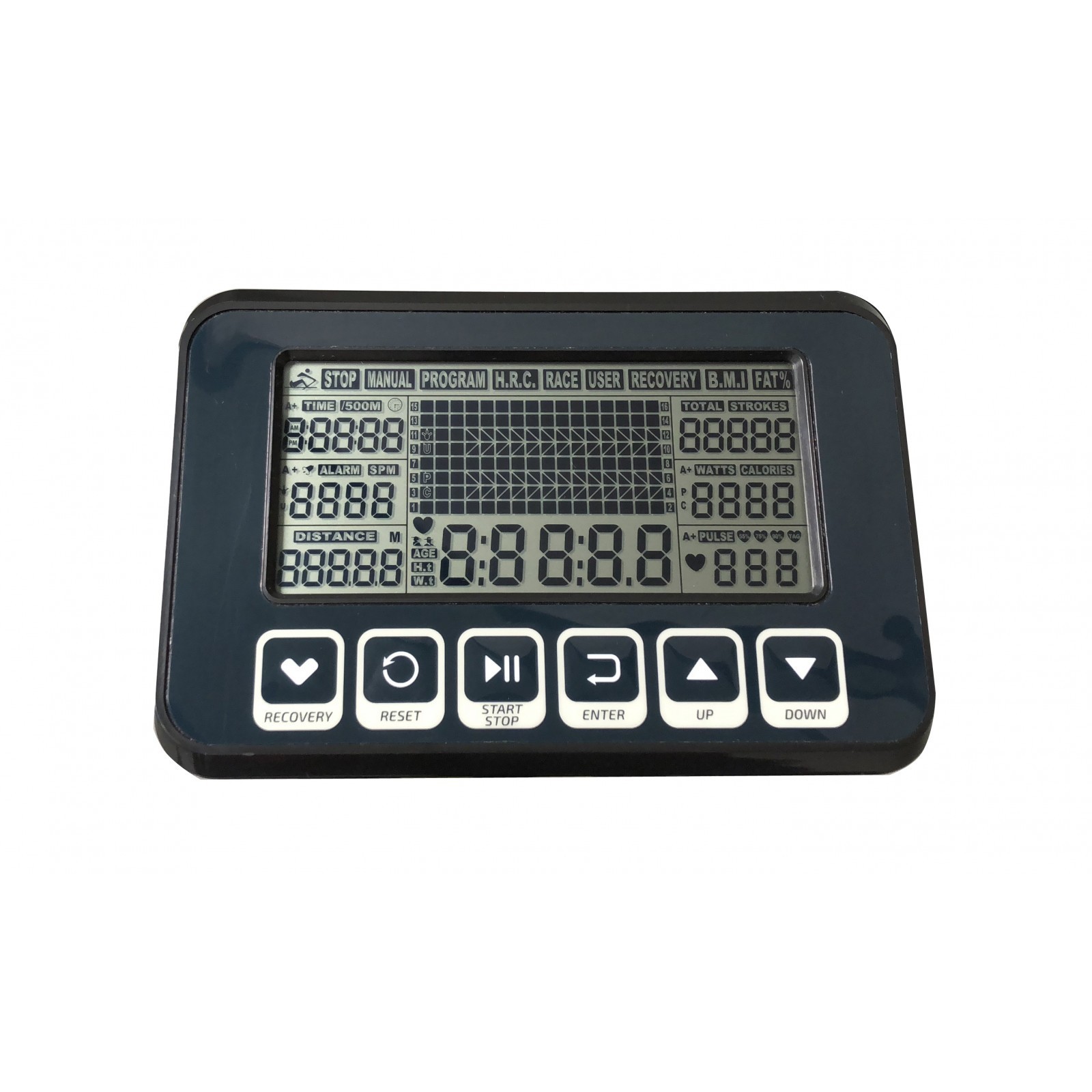 Показатели дисплеяЧасы, календарь, температура, время, время/500м, скорость, дистанция, темп, количество гребков в минуту, общее количество гребков, количество сожженных калорий, пульс (встроенный приемник кардио сигнала)