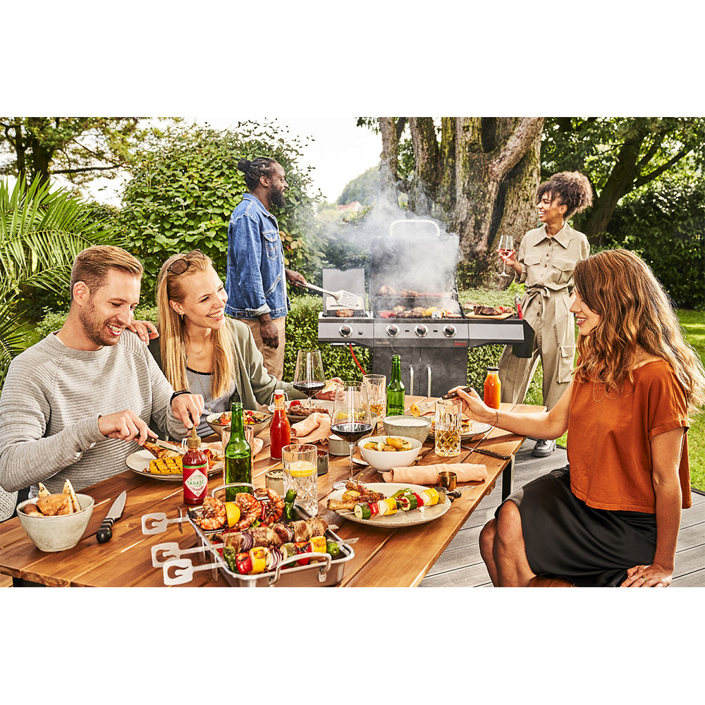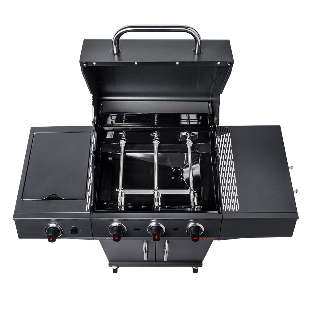 Три основные горелки из нержавеющей стали имеют гарантию 5 лет. Горелки обеспечивают мощный жар для инфракрасной пластины TRU Infrared™, которая сверху накрыта классической чугунной решеткой, покрытой фарфоровой эмалью.