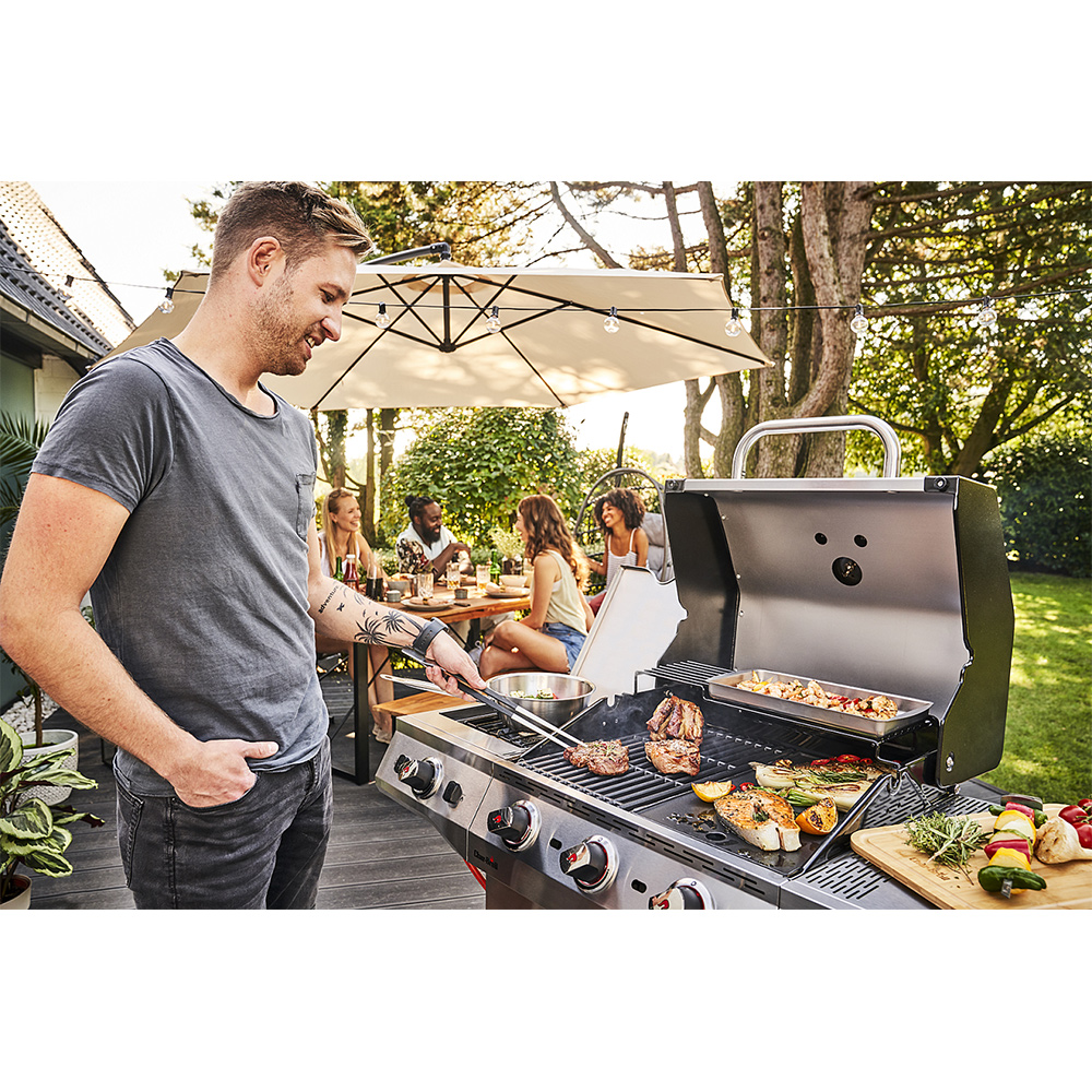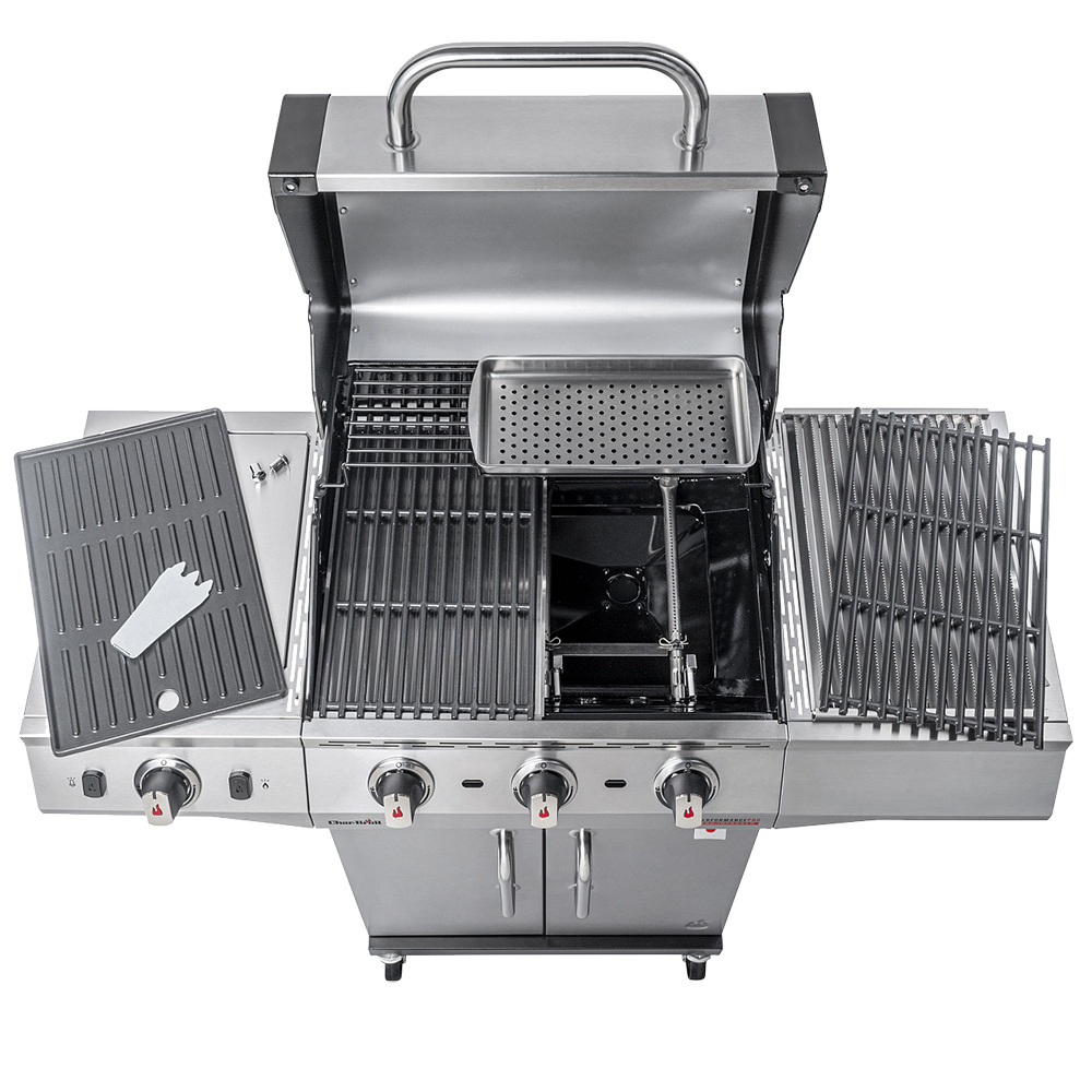 Новейший газовый гриль Performance PRO™ оснащается запатентованной инфракрасной пластиной TRU Infrared™, которая обеспечивает равномерный жар по всей решетке и предохраняет от вспышек капающего жира в котле. Эта сбалансированная модель среднего размера с тремя основными и дополнительной боковой горелками прекрасно подойдет для любой компании.