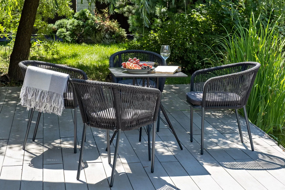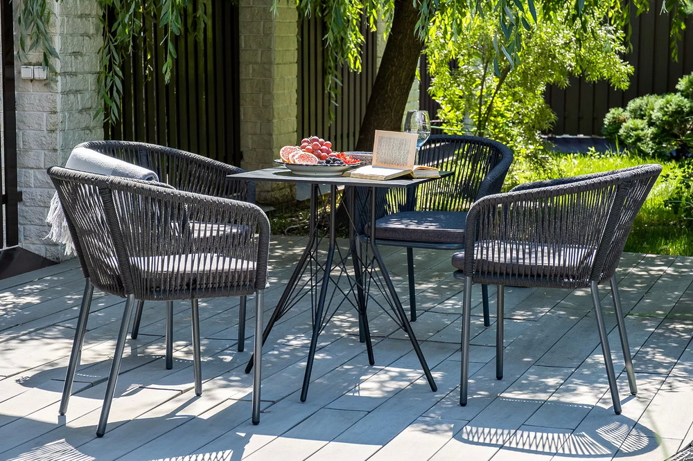 Интерьерный стол «Конте» предназначен для создания небольшой обеденной зоны или зоны отдыха в гостиной, на балконе или веранде.Подстолье выполнено из стали, столешница - высокопрочный монолитный компакт-пластик HPL, толщиной 12 мм в цвете «серый гранит». Современный материал не боится осадков, резкой смены температур и пролитой жидкости.Размер столешницы – 630х630 мм, высота стола – 750 мм. Дополнить этот столик можно стульями из линейки «Марсель» или «Бордо».
