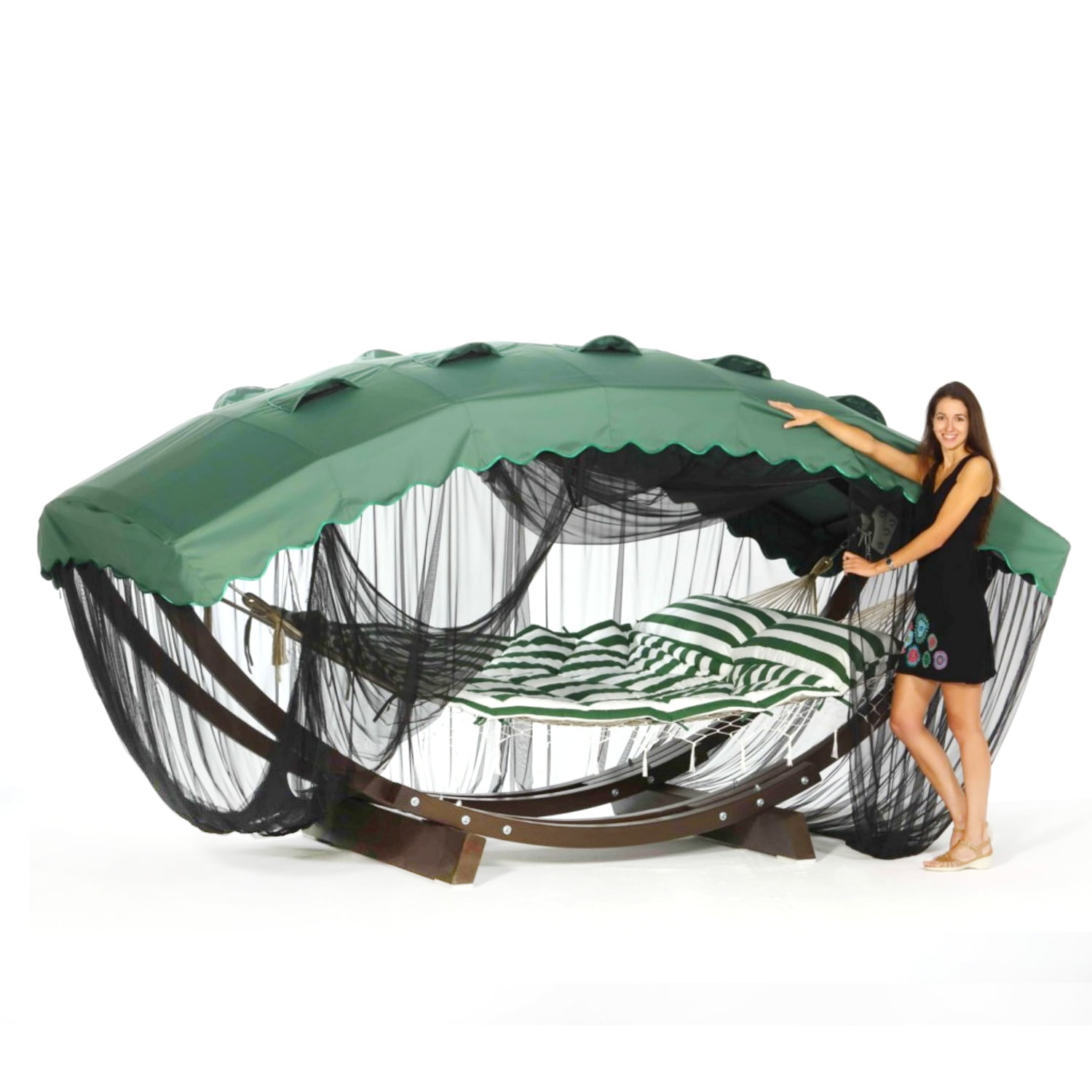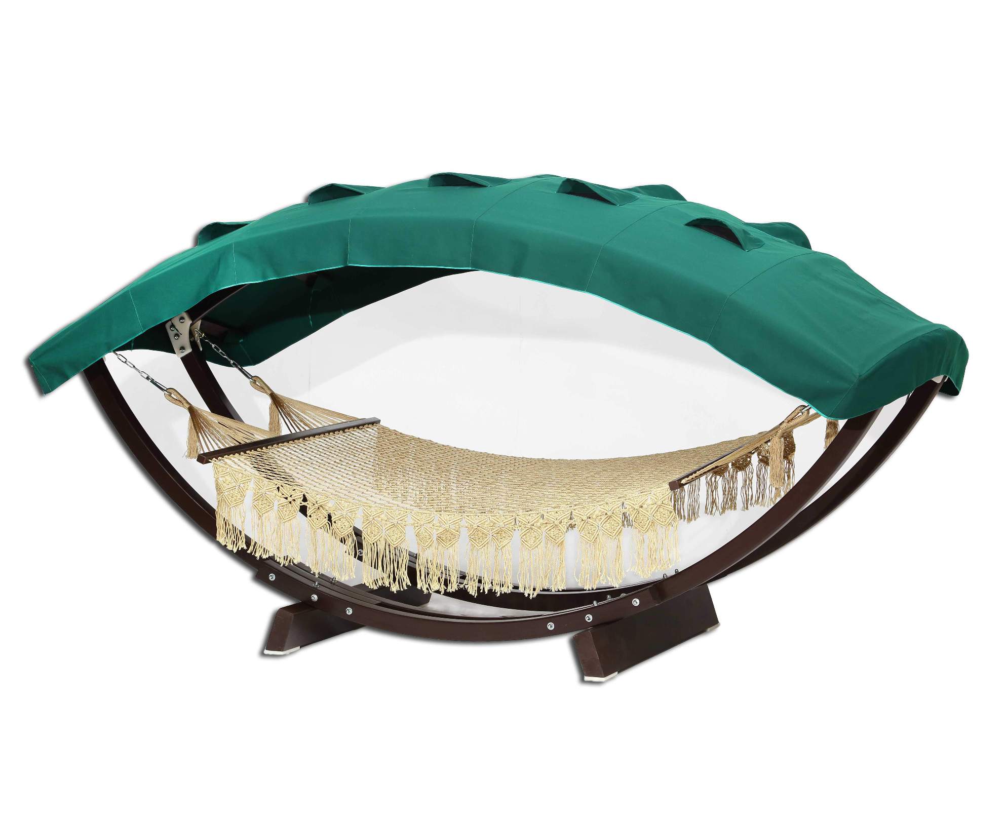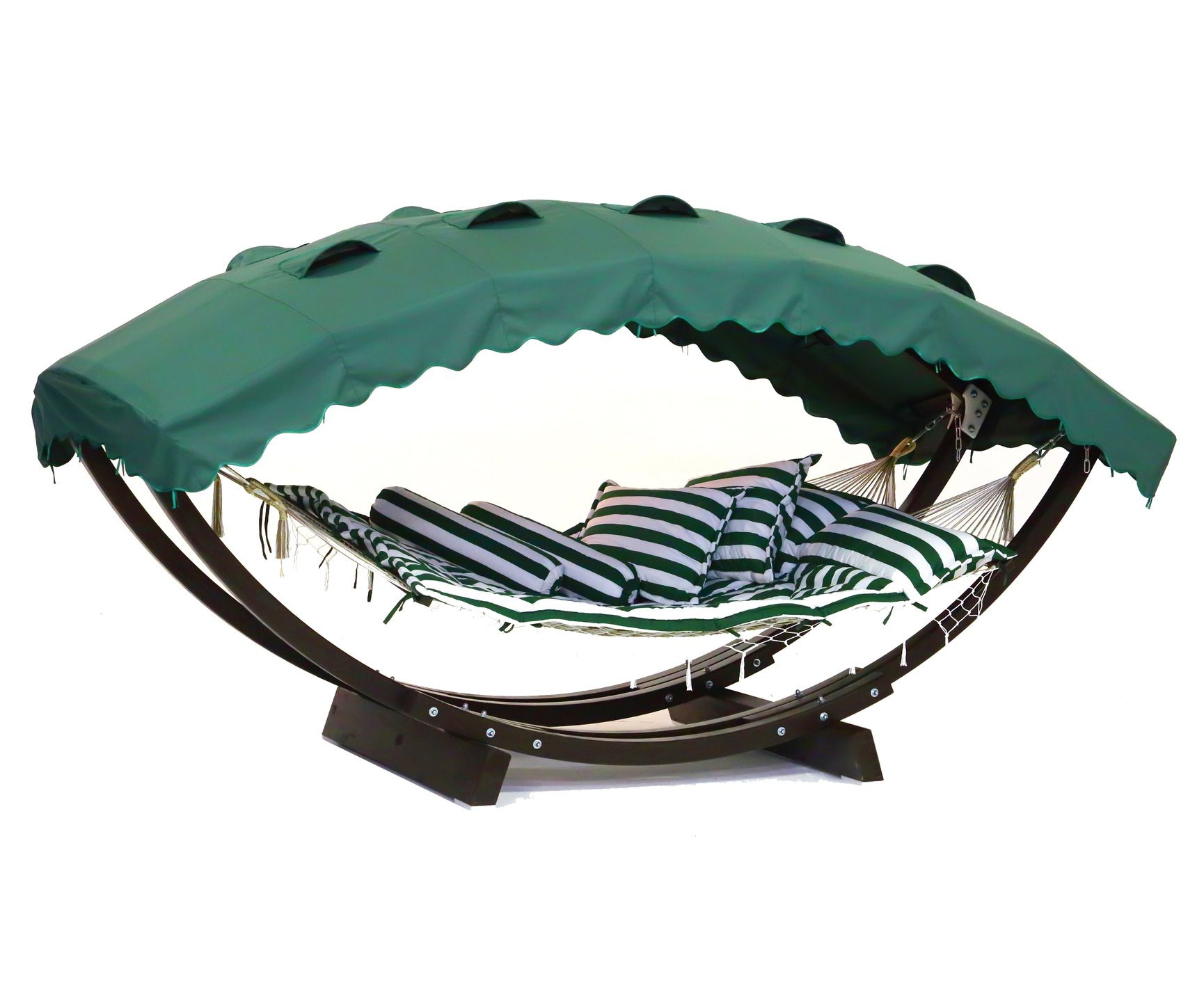 Каркас «Лотос» и «Лотос Люкс используются в паре с одноименными гамаками. Обе модели являются слегка уменьшенными копиями каркаса «Семейный». Все материалы, применяемые в производстве гамаков, полностью безопасны для людей и экологичны. Навес изготовлен из плотной водонепроницаемой ткани. Каркас выполнен из клееного бруса со специальной пропиткой и лаковым покрытием, что обеспечивает защиту от влаги и других неблагоприятных факторов. Каркас полностью устойчив и выдерживает нагрузку до 200 кг.