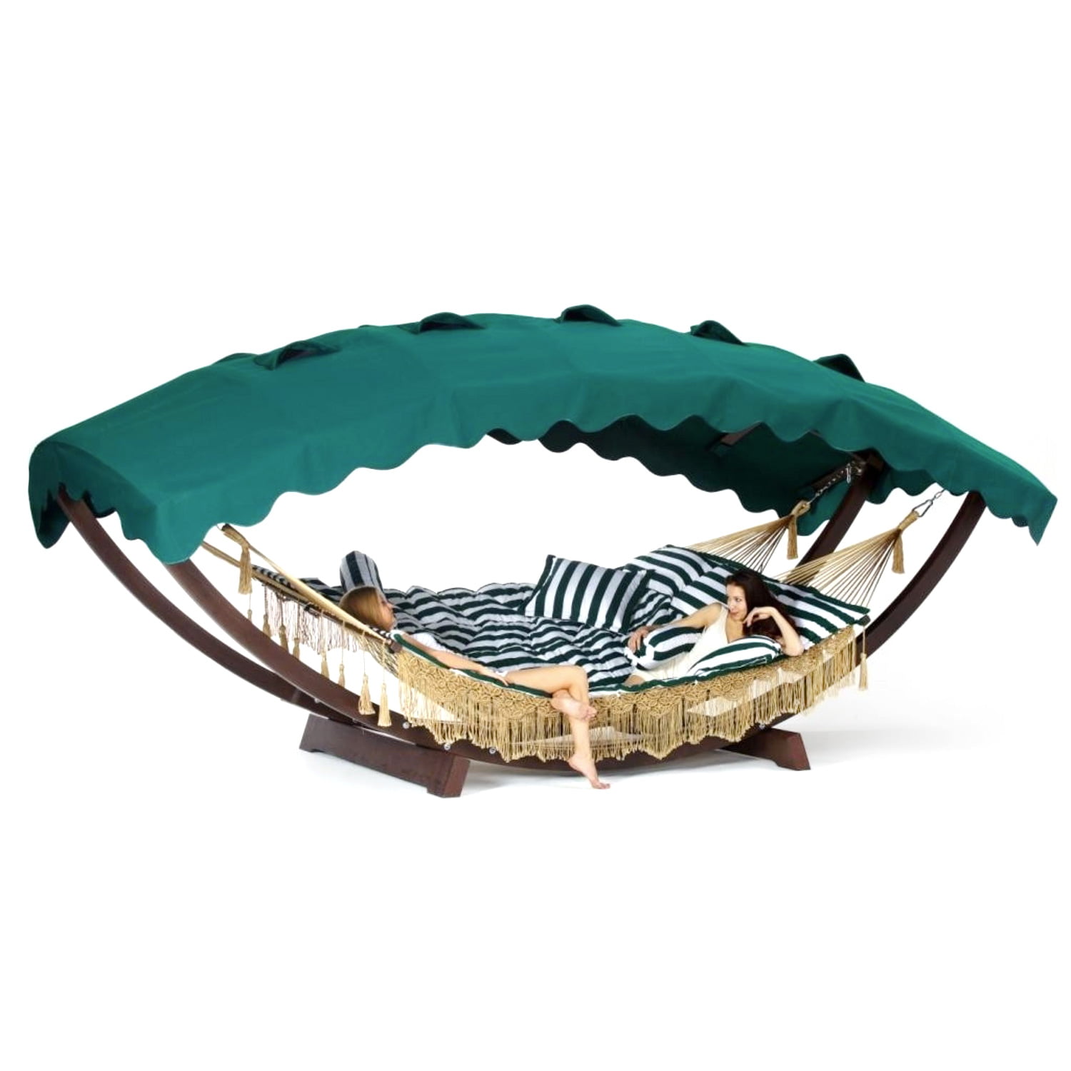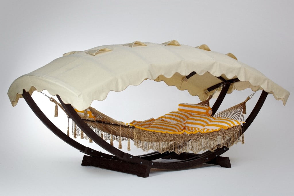 Каркас «Семейный» используется в паре с одноименным гамаком. Конструкция изделия продумана до мелочей, поэтому особых усилий для его сборки не потребуется. Дуги каркаса состоят из деревянных ламелей, склеенных водостойким клеем: благодаря этой технологии уменьшается внутреннее напряжение и возрастает качество столярного материала. Покрытое акриловым лаком, дерево становится устойчивым к неблагоприятным факторам извне. Все материалы, применяемые в производстве гамака, полностью безопасны для людей и экологичны. Навес изготовлен из плотной водонепроницаемой ткани. Каркас полностью устойчив и выдерживает нагрузку практически до 300 килограмм.