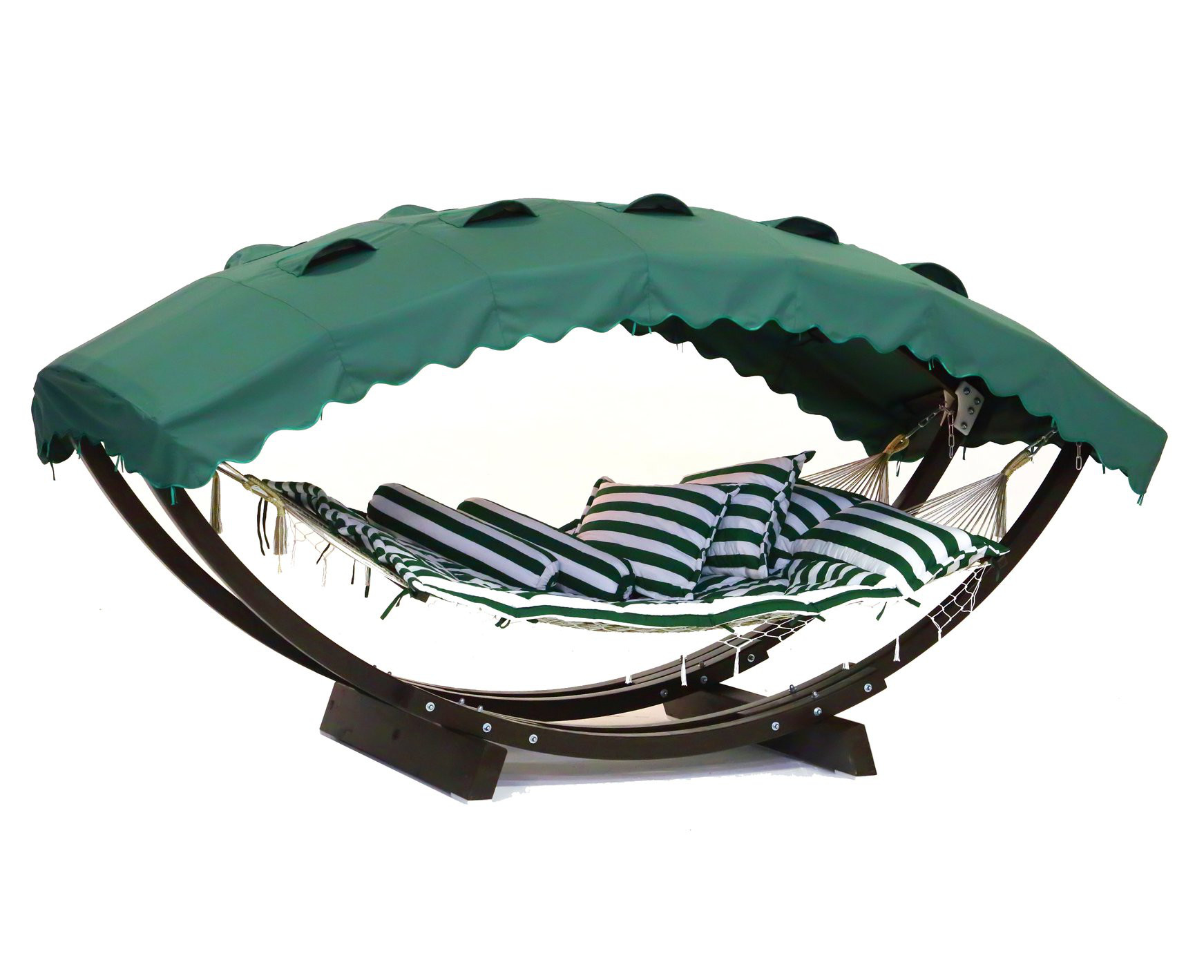 Каркас «Лотос» и «Лотос Люкс используются в паре с одноименными гамаками. Обе модели являются слегка уменьшенными копиями каркаса «Семейный». Все материалы, применяемые в производстве гамаков, полностью безопасны для людей и экологичны. Навес изготовлен из ткани оксфорд. Каркас выполнен из клееного бруса со специальной пропиткой и лаковым покрытием, что обеспечивает защиту от влаги и других неблагоприятных факторов. Каркас полностью устойчив и выдерживает нагрузку до 200 кг. Гамак приобретается отдельно.