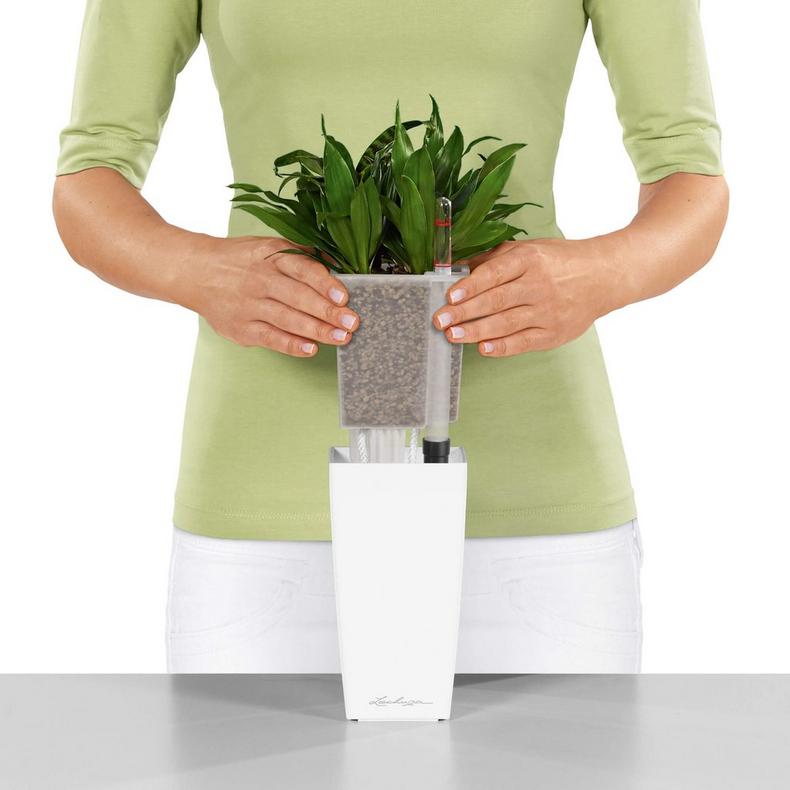 В MINI-CUBI и MAXI-CUBI можно сажать любые комнатные растения и даже орхидеи. В комплекте – внешний и внутренний горшок, фитиль, индикатор уровня воды и фирменный субстрат LECHUZA-PON. Его объема достаточно, чтобы засыпать целиком кашпо.