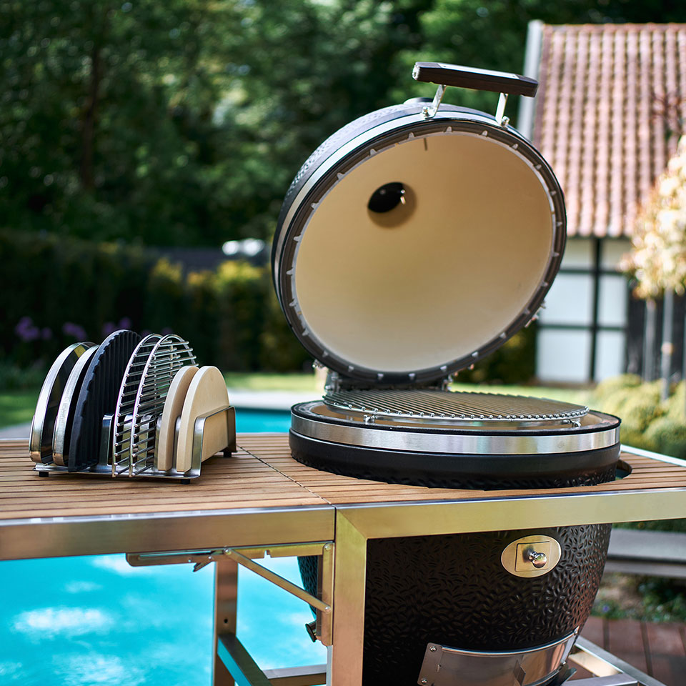Monolith Classic Avantgarde представляет собой новую модель с диаметром решетки 44 см, которая станет отличным выбором для гриллинга, копчения, запекания при низкой температуре, выпечки хлеба и других кулинарных экспериментов для компании до 8 человек.