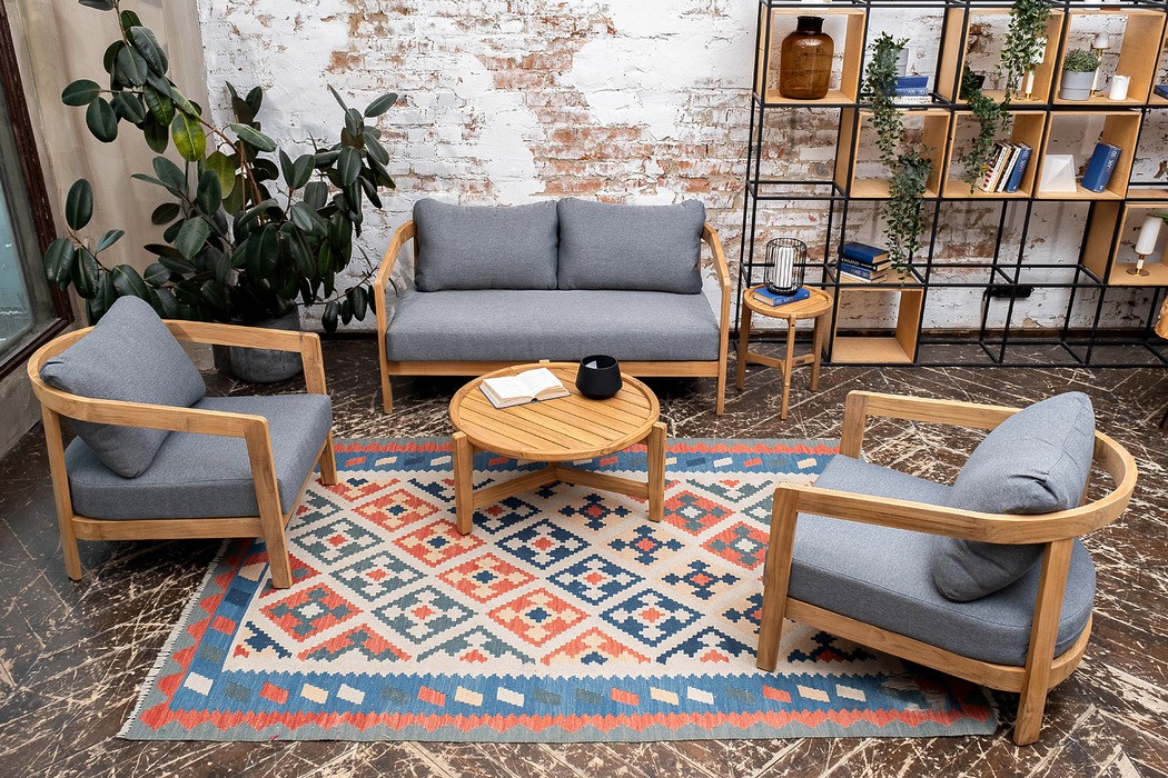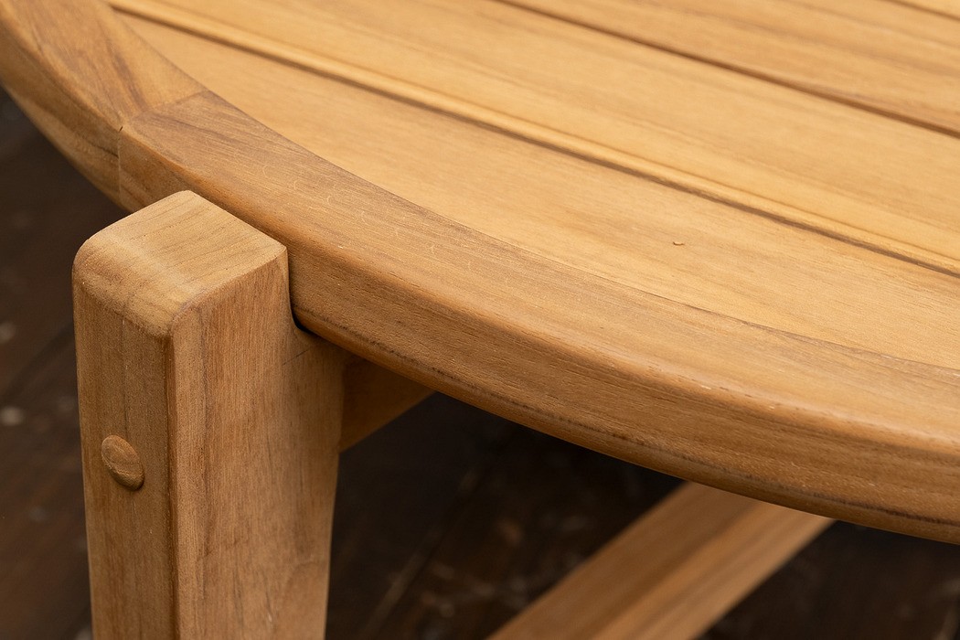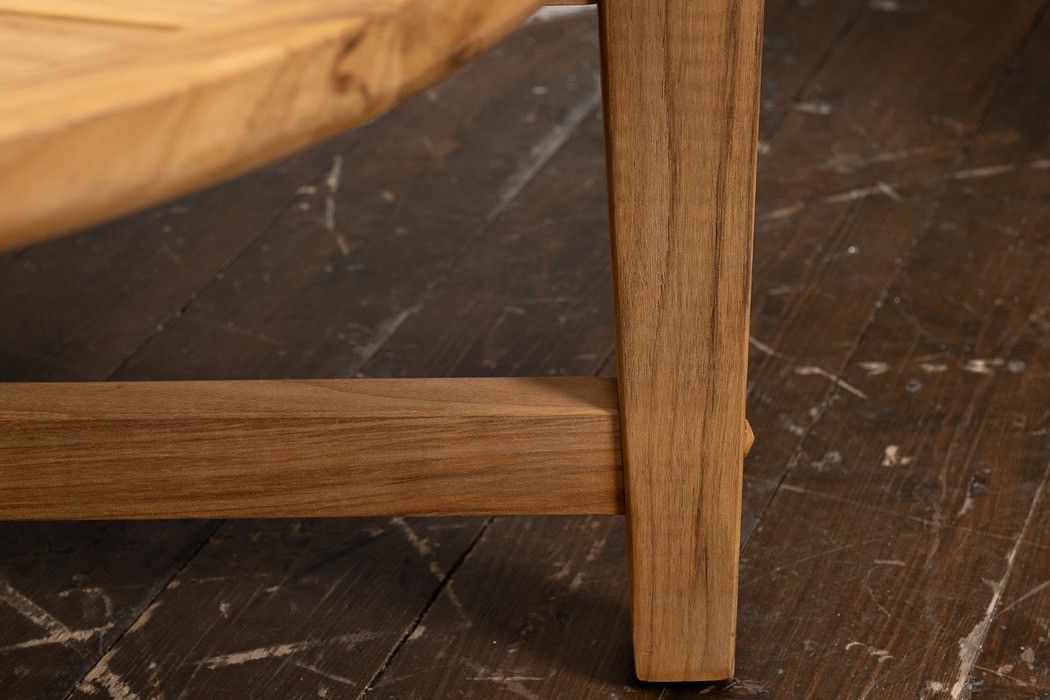 Материал — массив тика, отделка экомаслом, цвет – натуральный тик. Анодированная фурнитура из нержавеющей стали.