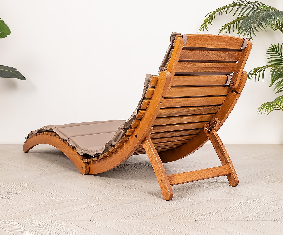 Лежак и столик изготовлены из массива дерева тропической акации, пропитанного защитным экологическим маслом.