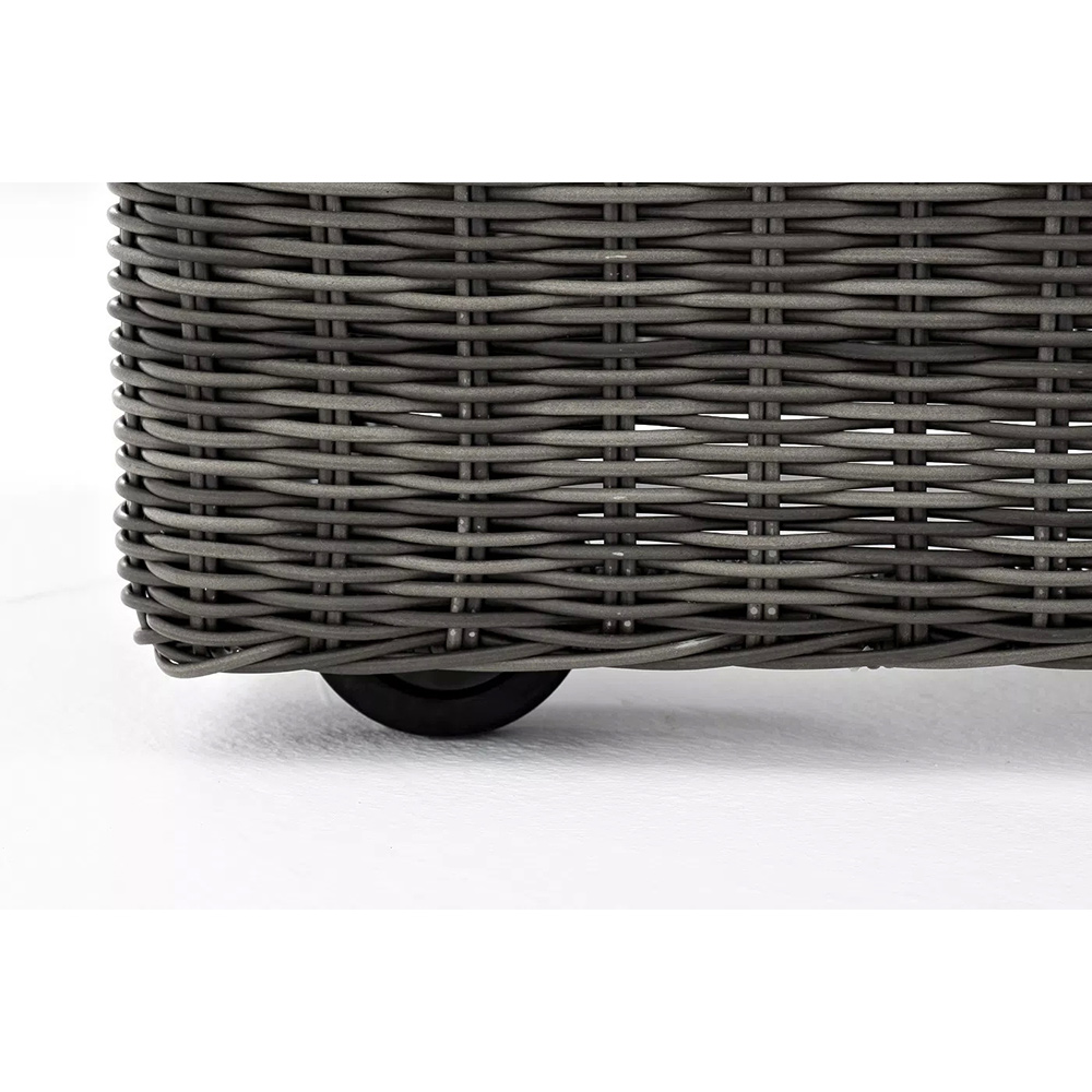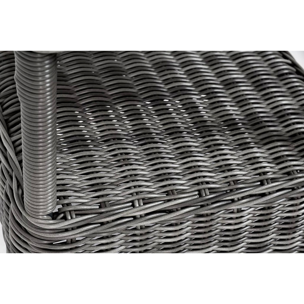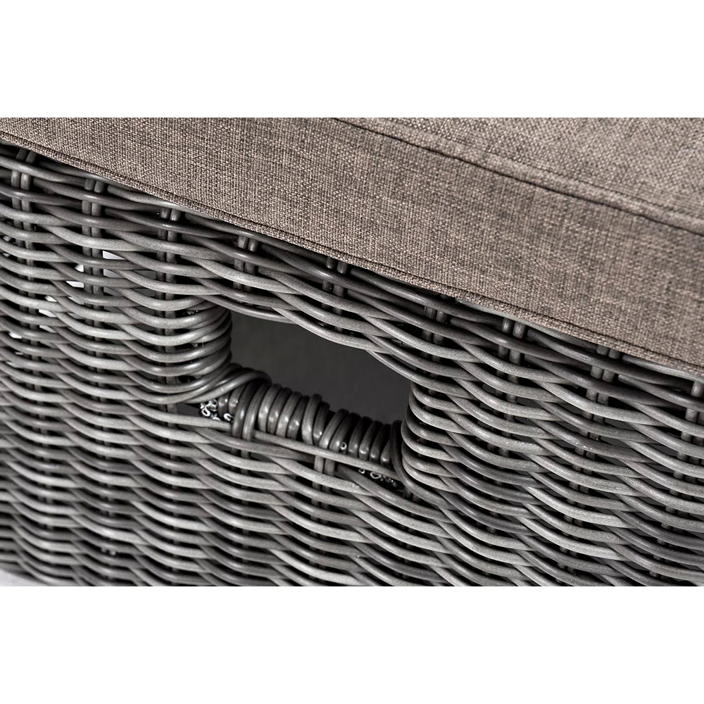 Мебельные изделия выполнены из круглого искусственного ротанга графитового цвета. Легкость и прочность обеспечивает каркас из алюминия, который способен выдержать до 150 кг.