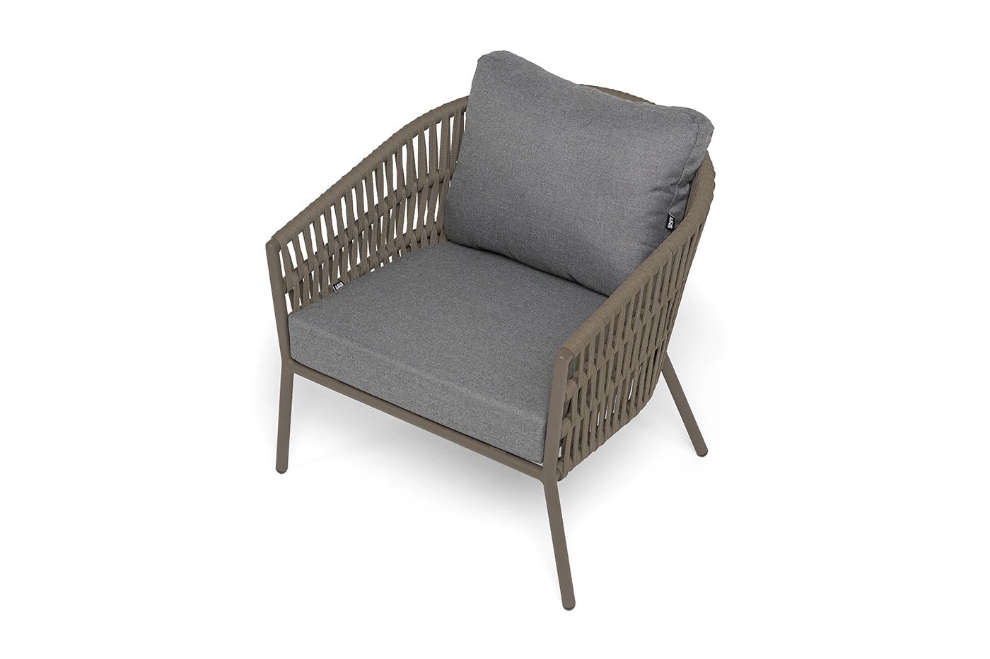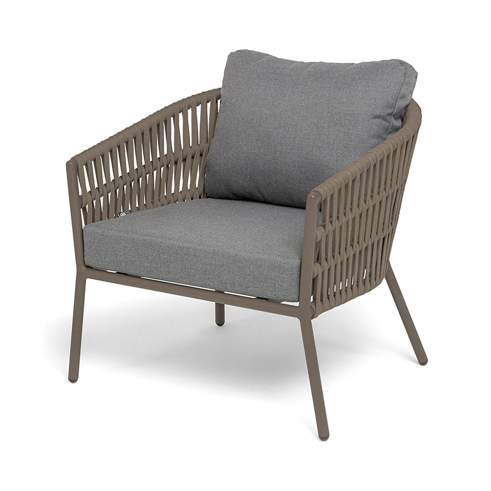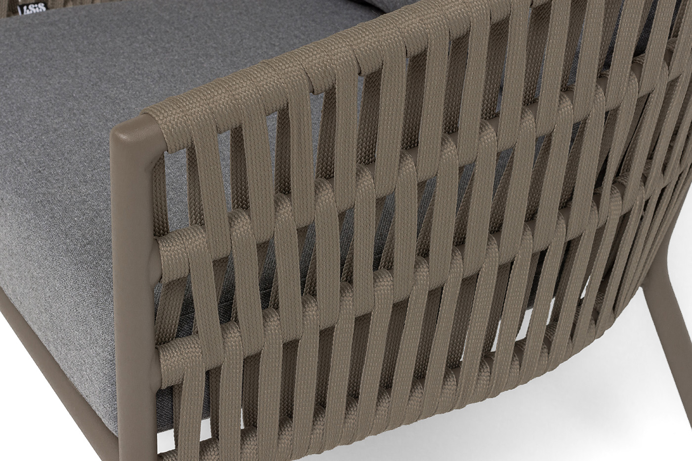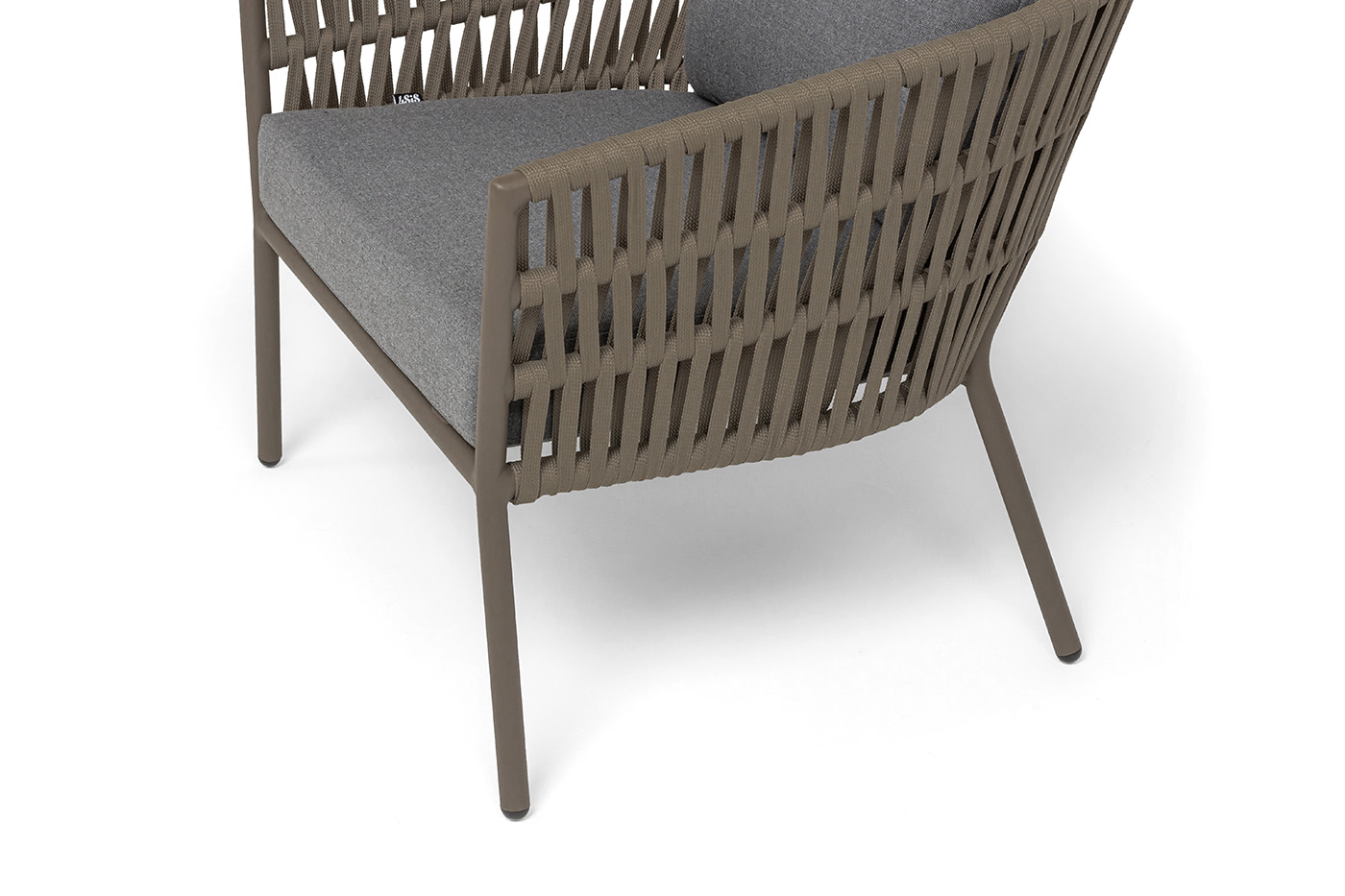 Изысканное плетеное кресло «Комо» станет оазисом безмятежности в вашем саду или на уютном веранде. Прочная и легкая алюминиевая рама, облаченная в благородный бежево-серый (RAL7006) оттенок, благодаря порошковой окраске, гарантирует долговечность и устойчивость к любым погодным условиям.