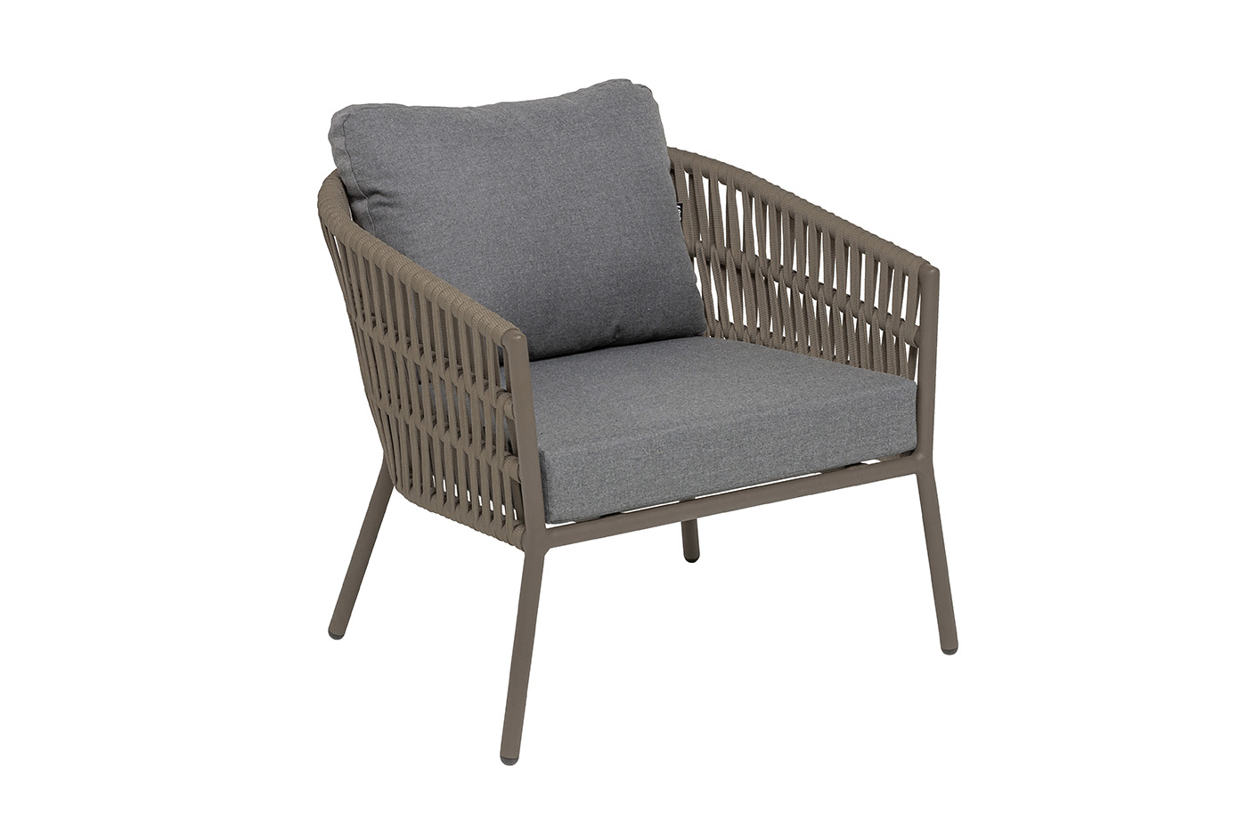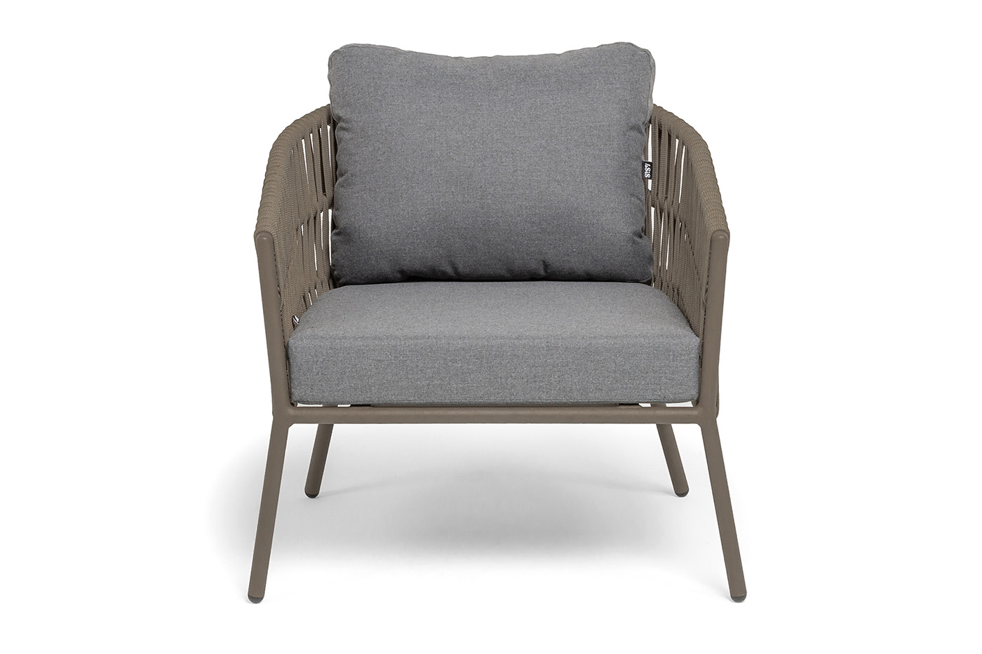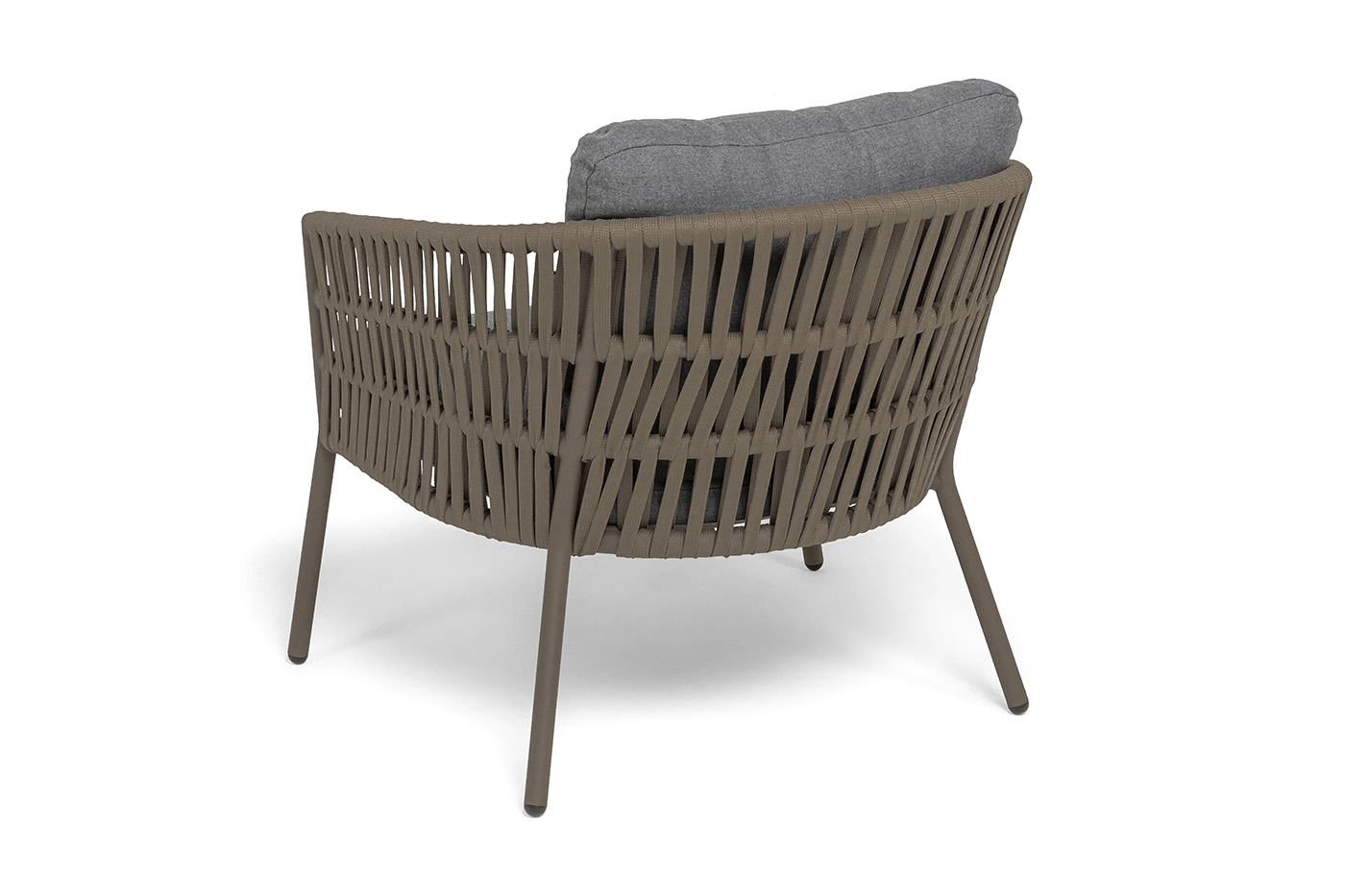 Изысканное плетеное кресло «Комо» станет оазисом безмятежности в вашем саду или на уютном веранде. Прочная и легкая алюминиевая рама, облаченная в благородный бежево-серый (RAL7006) оттенок, благодаря порошковой окраске, гарантирует долговечность и устойчивость к любым погодным условиям.