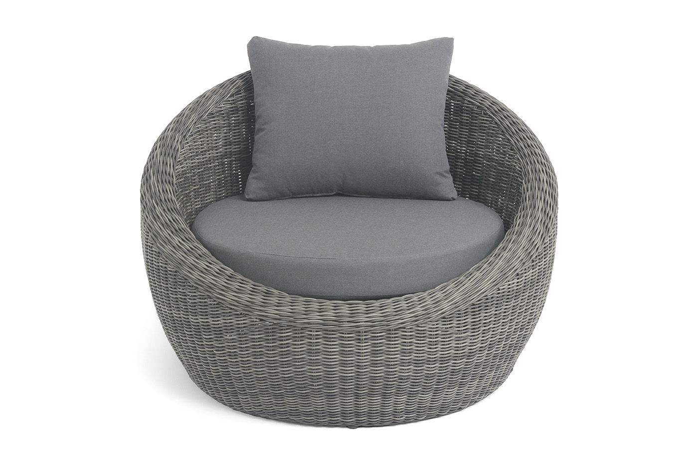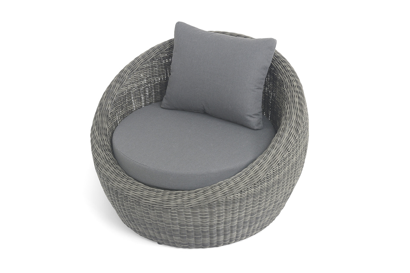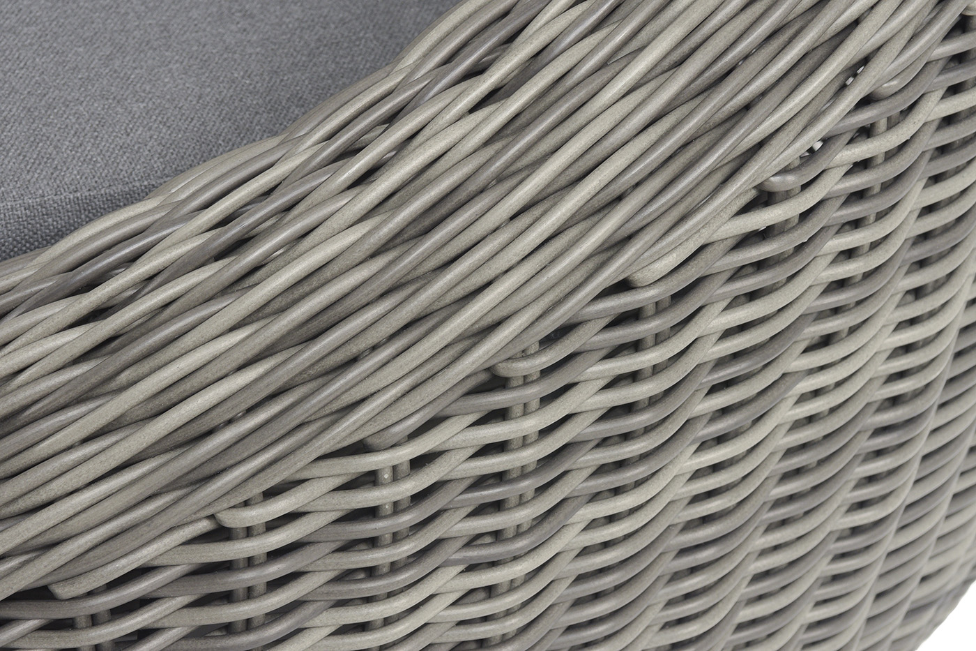 Надежность и износостойкость мебели гарантирует каркас, который сделан из качественного алюминия. Ее дополняет ручное плетение, при изготовлении которого используется искусственный ротанг. Представлена модель в графитовом цвете.