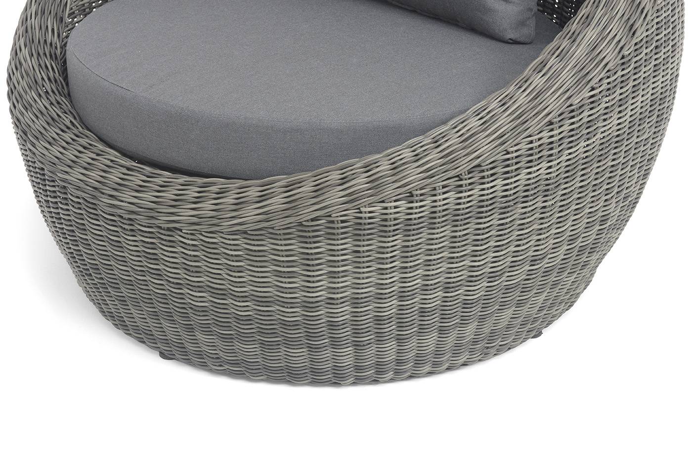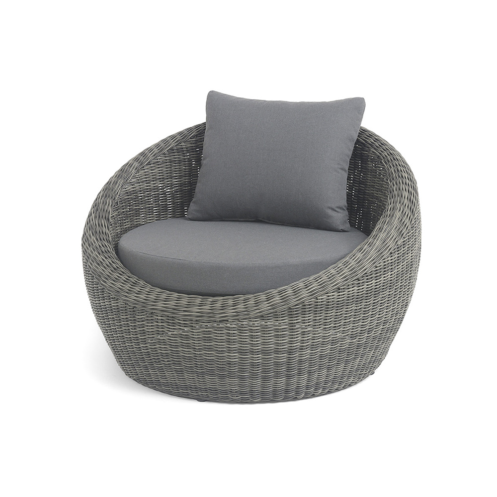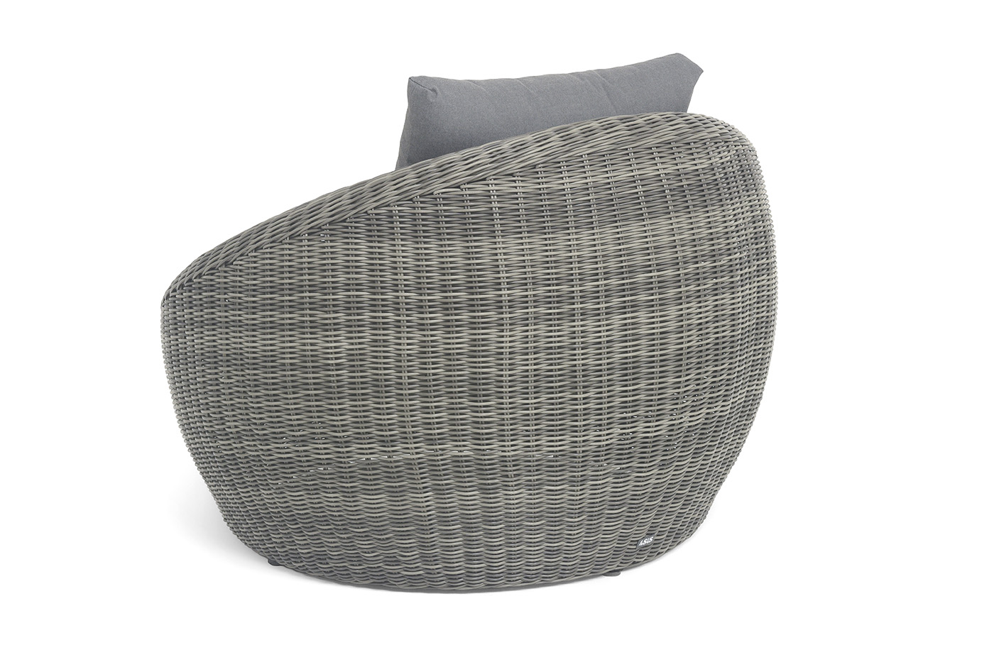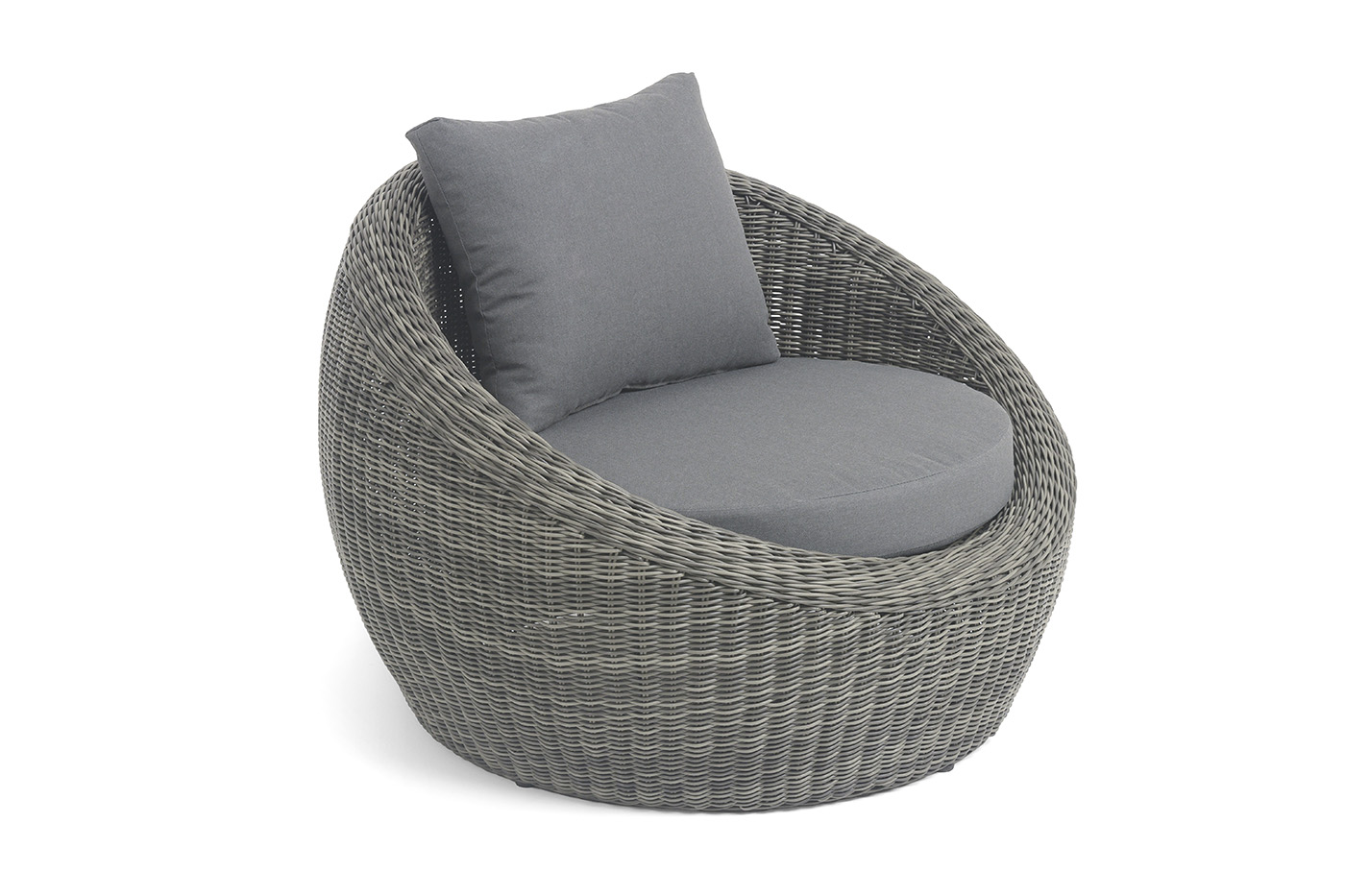 Надежность и износостойкость мебели гарантирует каркас, который сделан из качественного алюминия. Ее дополняет ручное плетение, при изготовлении которого используется искусственный ротанг. Представлена модель в графитовом цвете.