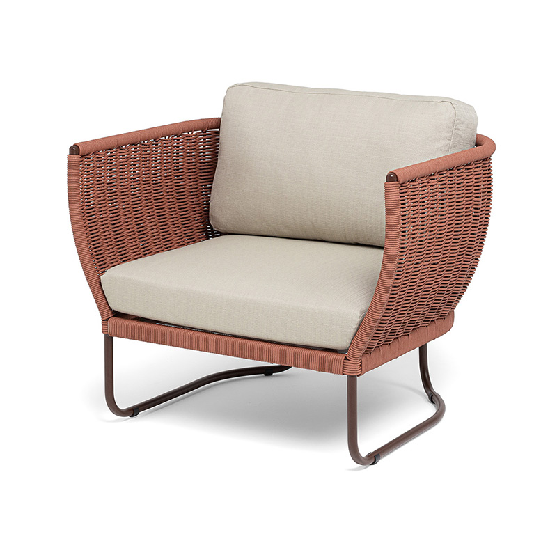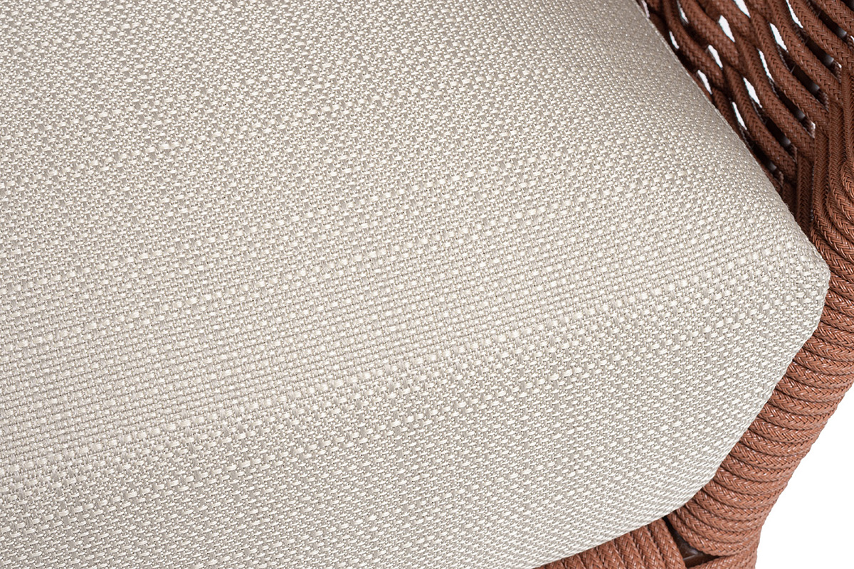 Плетение боковины каркаса вручную оплетены роупом — эластичными синтетическими лентами из высокопрочных полиэфирных волокон. Оплетка - круглый tex, что придает креслу изысканный и оригинальный внешний вид.
