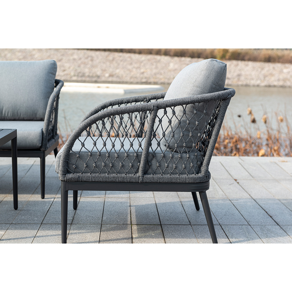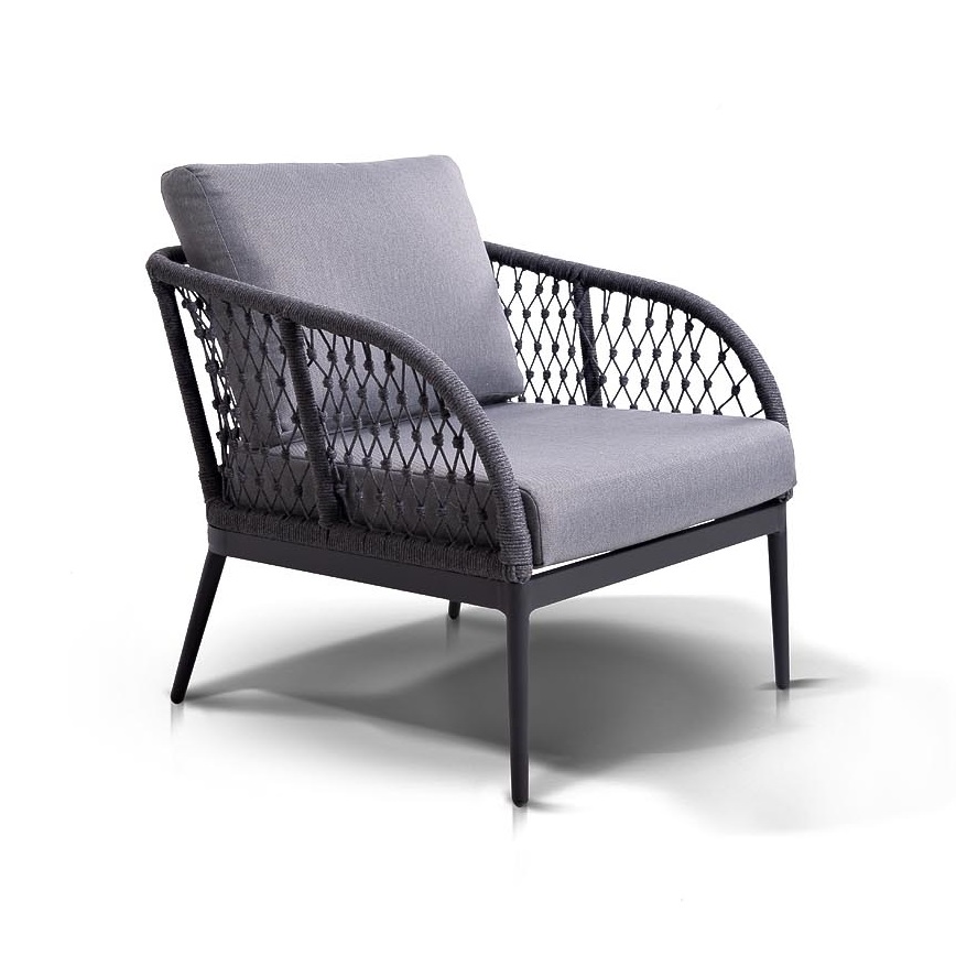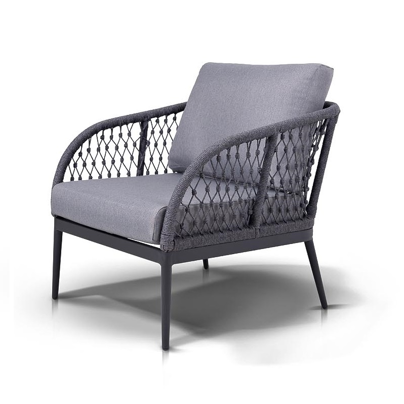 При изготовлении каркаса используется алюминий. В качестве декоративного элемента предусмотрена ручная оплетка из синтетических лент. Они сделаны на основе высокопрочных полиэфирных волокон. Выполнена модель в темно-сером цвете.