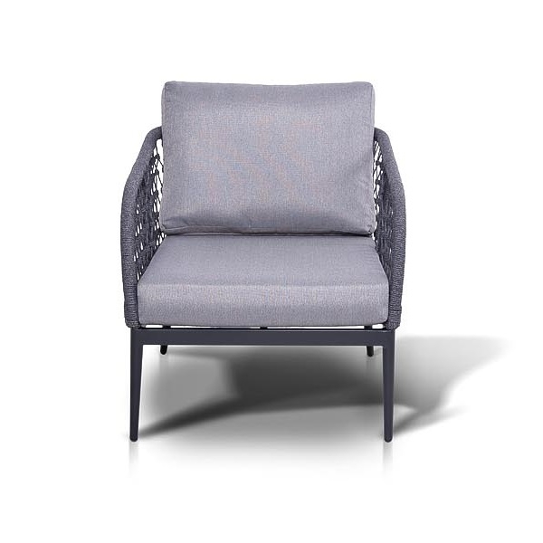 Кресло идет в комплекте со съемными подушками. Они представлены в аналогичном сером оттенке. При пошиве используется прочный полиэстер, плотность которого 230 гр/м2. Предварительно материал обрабатывается влагоотталкивающей пропиткой.