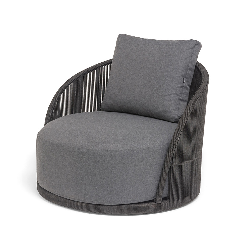 Боковины вручную оплетены роупом — эластичными синтетическими лентами из высокопрочных полиэфирных волокон. Однотонная темно-серая оплетка создает единый визуальный ансамбль с каркасом, подчеркивая лаконичность дизайна.