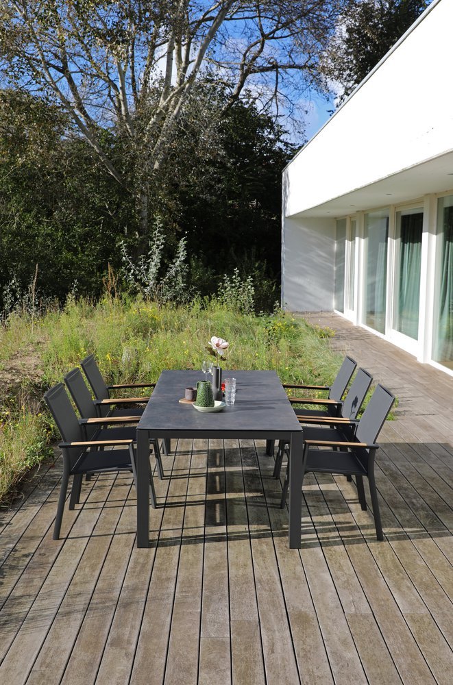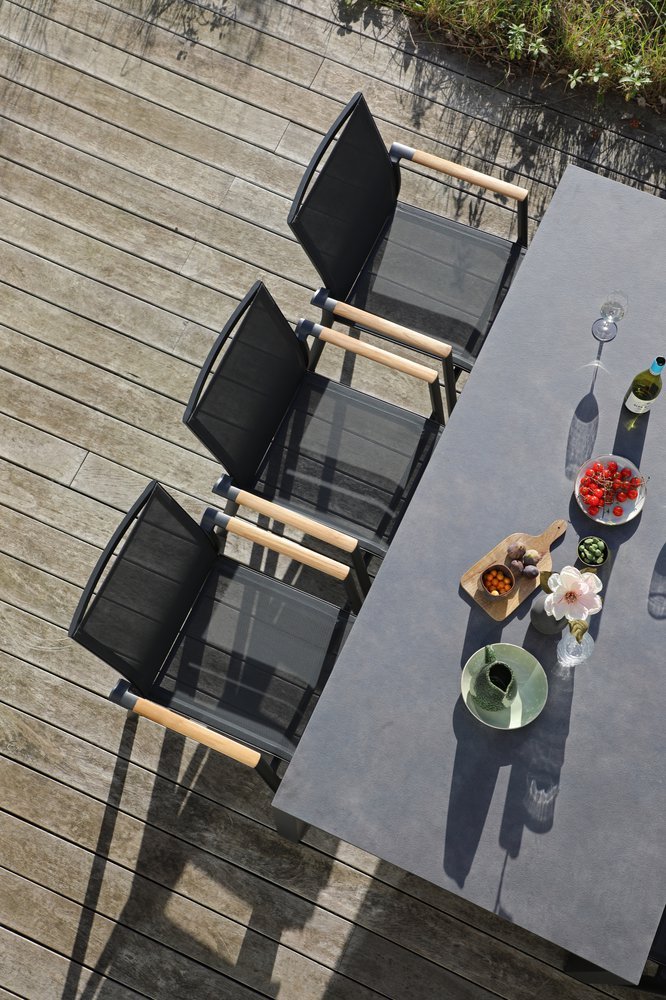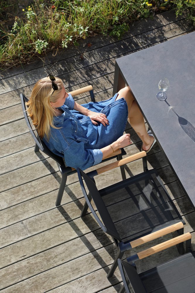 Кресло Andy с каркасом из квадратного трубчатого алюминия и тиковыми подлокотниками. Благодаря этому кресло выглядит намного более качественным и элегантным. Гармоничный внешний вид дополняет текстиленовый корпус, а его эргономичная форма обеспечивает максимальный комфорт даже при длительном сидении. За моделью очень легко ухаживать за счет высококачественных материалов.
