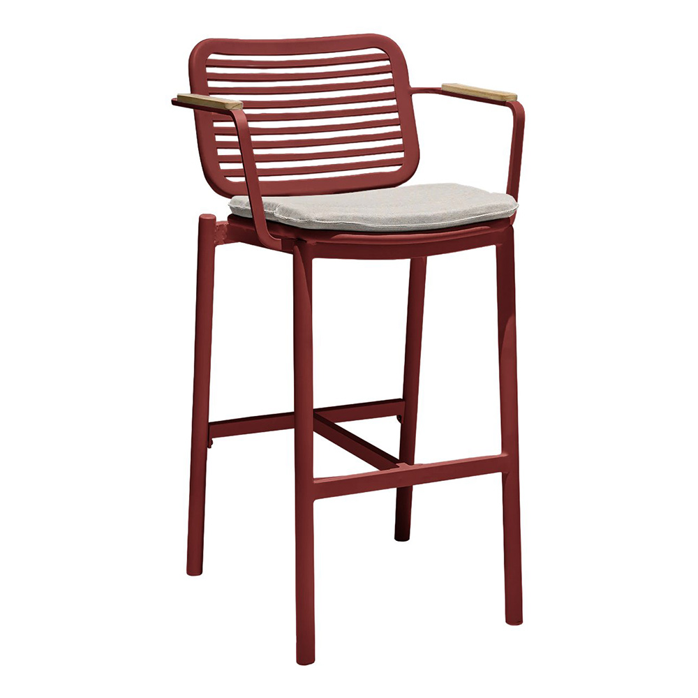 Прочное и стильное барное кресло Armona предназначено для использования на открытом воздухе. Барное кресло высочайшего качества имеет алюминиевую раму с порошковым покрытием, подлокотники из тикового дерева и съемную устойчивую к атмосферным воздействиям подушку, что обеспечивает его способность выдерживать разнообразные погодные условия.