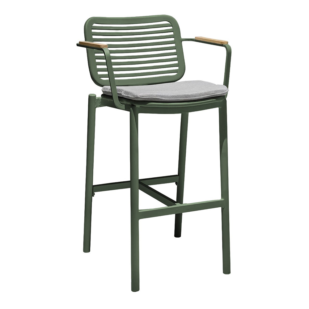 Прочное и стильное барное кресло Armona предназначено для использования на открытом воздухе. Барное кресло высочайшего качества имеет алюминиевую раму с порошковым покрытием, подлокотники из тикового дерева и съемную устойчивую к атмосферным воздействиям подушку, что обеспечивает его способность выдерживать разнообразные погодные условия.