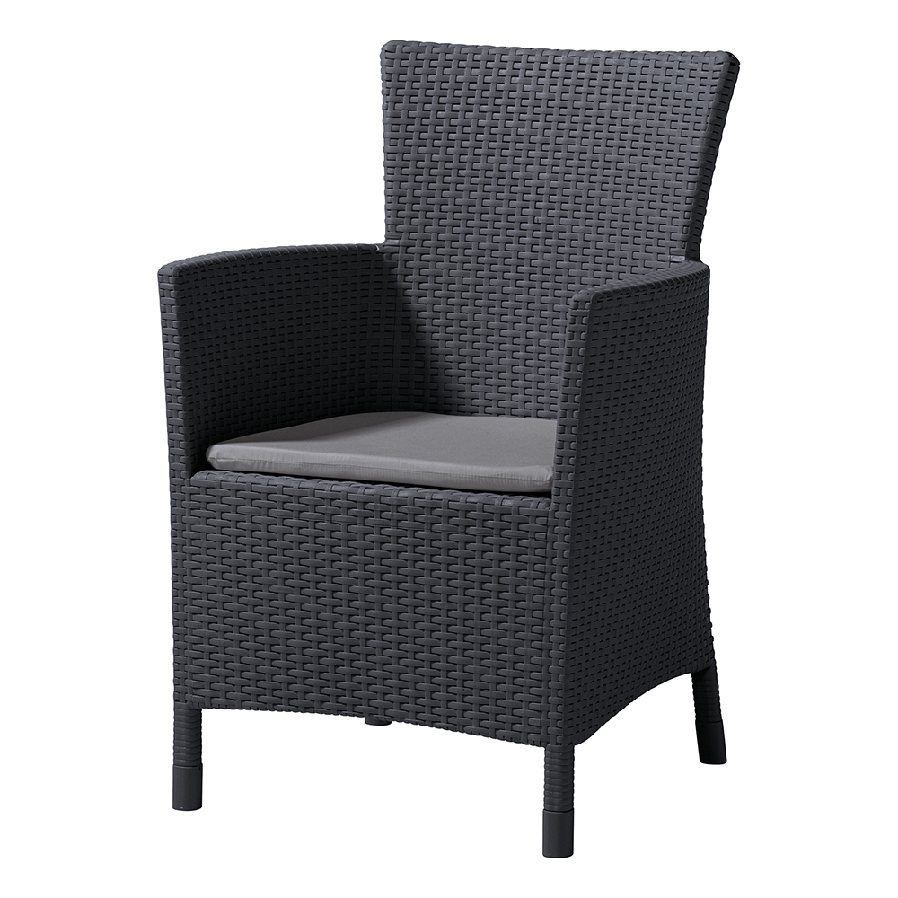 Iowa - это элегантное и комфортное садовое кресло, предлагаемое в комплекте с подушкой. Широкая гамма цветов и оригинальная, подобная ротанговой, фактура поверхности придется по вкусу даже самым требовательным пользователям. Изготовлено из стойкой к воздействию УФ-излучения и погодных условий высококачественной пластмассы. Очень просто собирается и легко чистится.