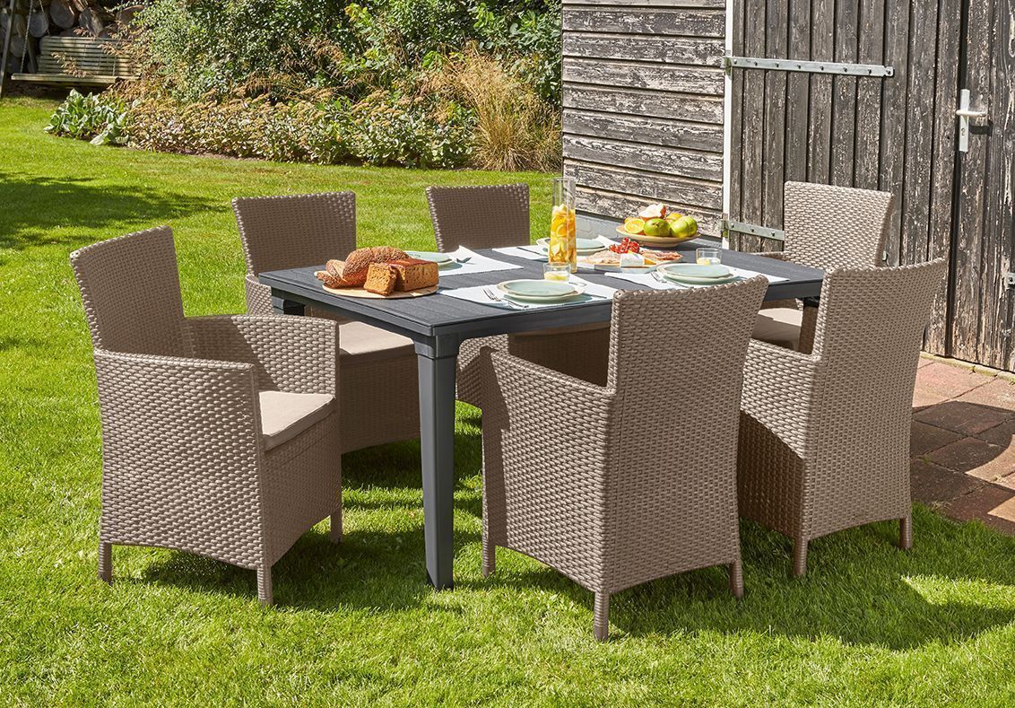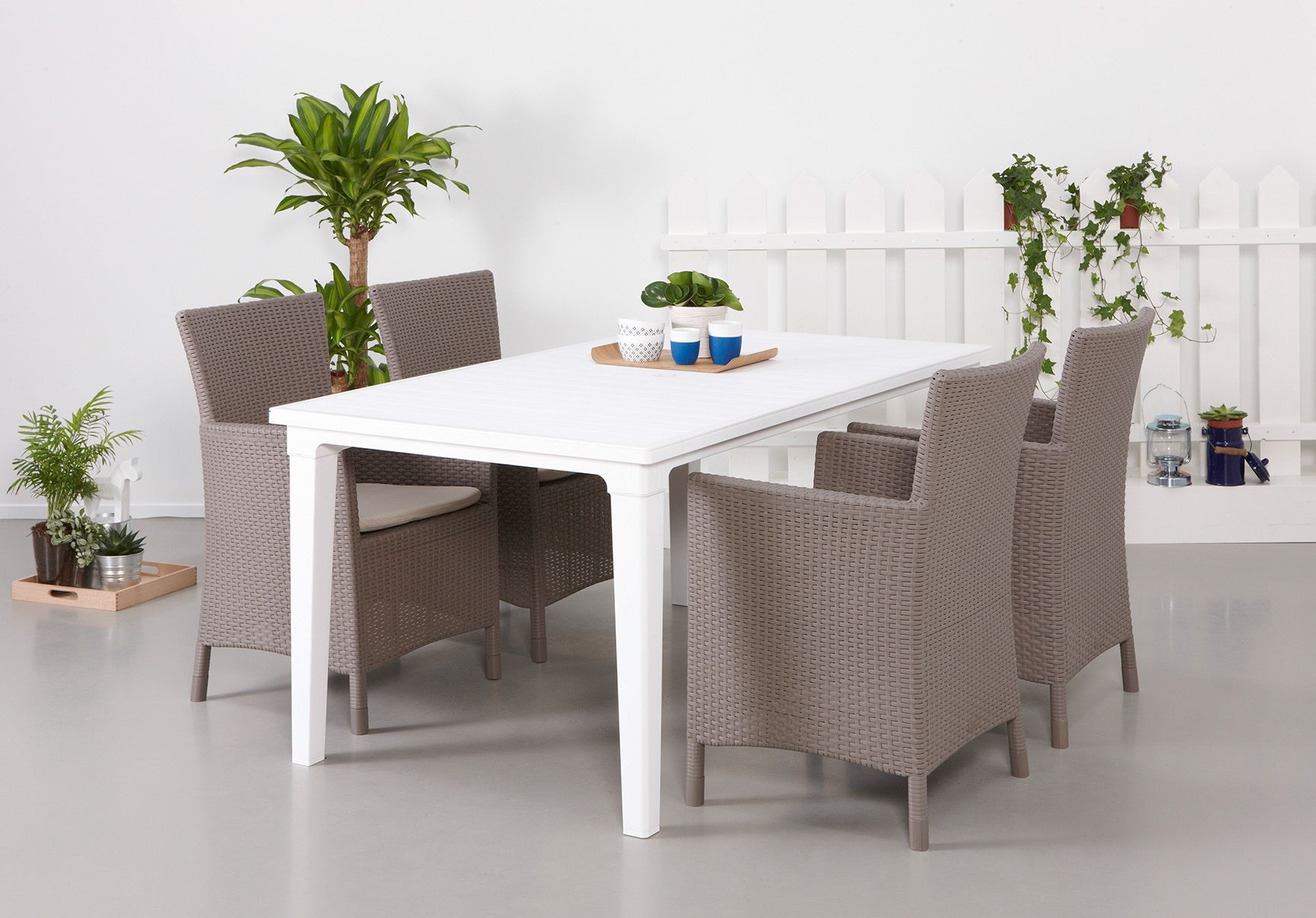 Iowa - это элегантное и комфортное садовое кресло, предлагаемое в комплекте с подушкой. Широкая гамма цветов и оригинальная, подобная ротанговой, фактура поверхности придется по вкусу даже самым требовательным пользователям. Изготовлено из стойкой к воздействию УФ-излучения и погодных условий высококачественной пластмассы. Очень просто собирается и легко чистится.
