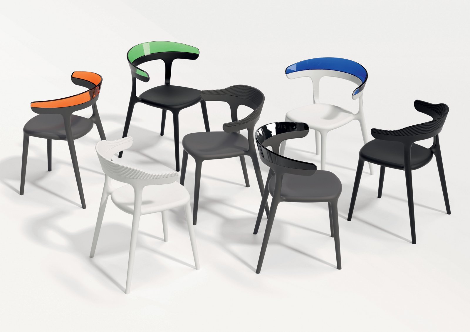 Благодаря своему стильному и эргономичному дизайну кресло Luna придает яркие краски любым пространствам. Когда оно не используется, его можно удобно вставлять друг в друга и хранить, не занимая много места. Комбинация из двух модных цветов делает его идеальным креслом, которое подойдет для большинства пространств. В состав полимеров, из которых изготовлены кресла, входит защита от УФ-лучей, что позволяет использовать их как в помещении, так и на открытом воздухе.