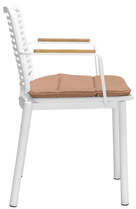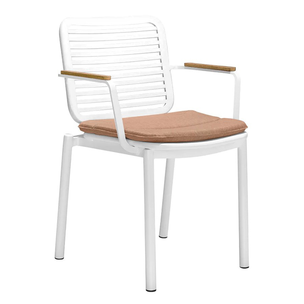 Прочное кресло Armona для обеденной зоны на открытом воздухе создано, чтобы выдержать испытание временем. Его рама изготовлена из алюминия с порошковым покрытием, что обеспечивает долговечность. Кресло оснащено элегантными подлокотниками из тикового дерева и съемной подушкой, что делает его невосприимчивым к различным погодным условиям.
