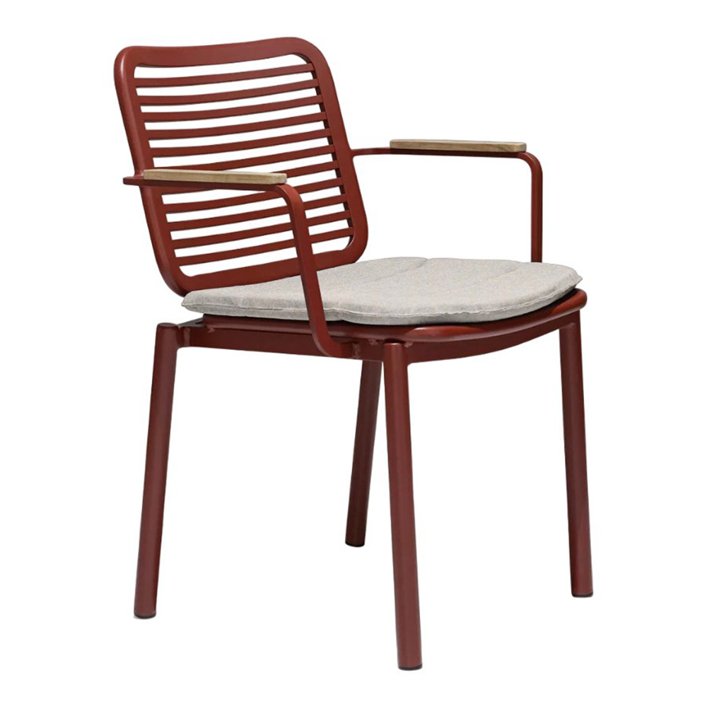 Прочное кресло Armona для обеденной зоны на открытом воздухе создано, чтобы выдержать испытание временем. Его рама изготовлена из алюминия с порошковым покрытием, что обеспечивает долговечность. Кресло оснащено элегантными подлокотниками из тикового дерева и съемной подушкой, что делает его невосприимчивым к различным погодным условиям.