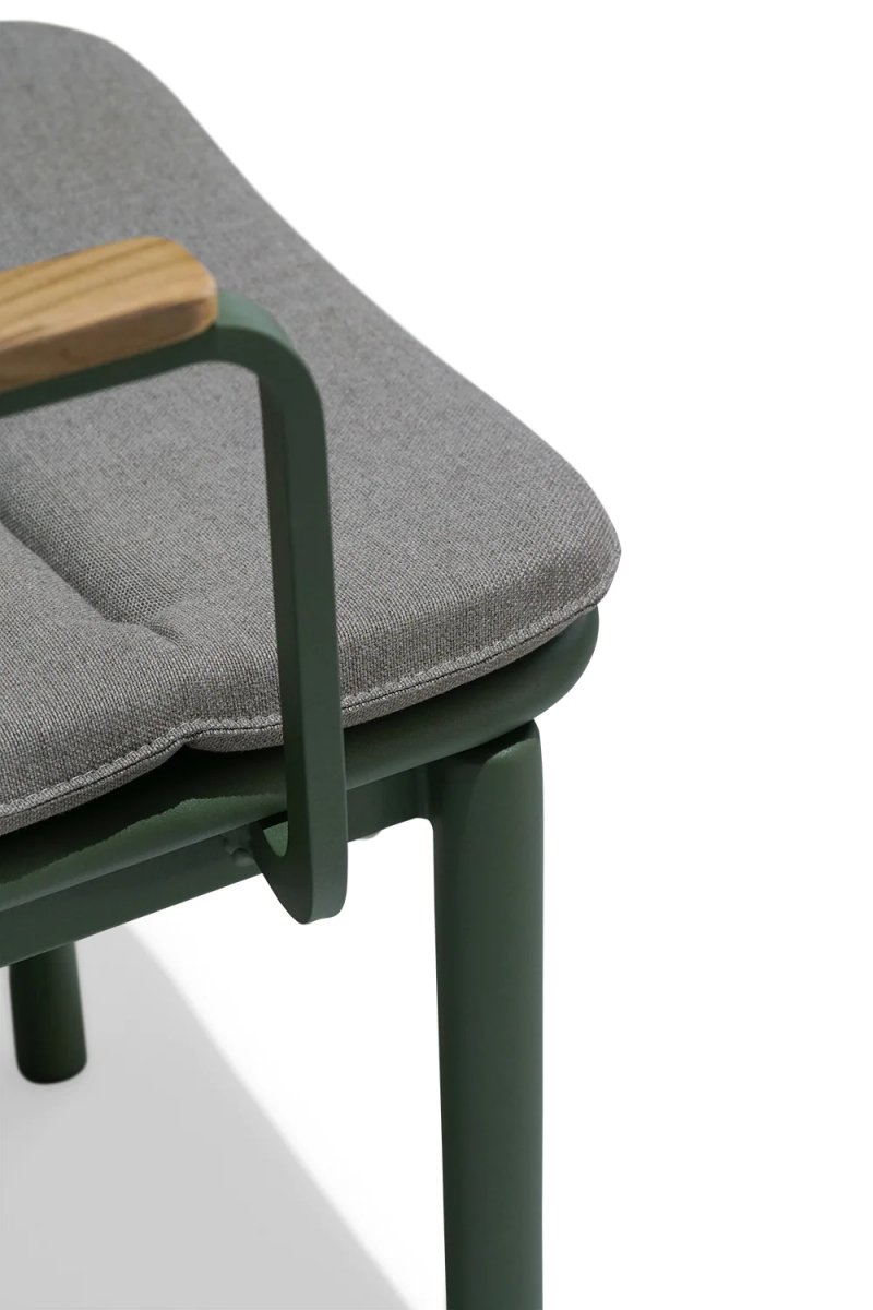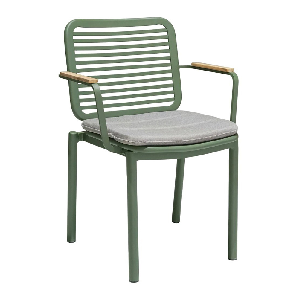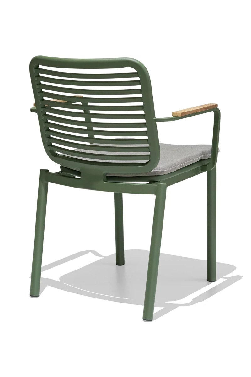 Прочное кресло Armona для обеденной зоны на открытом воздухе создано, чтобы выдержать испытание временем. Его рама изготовлена из алюминия с порошковым покрытием, что обеспечивает долговечность. Кресло оснащено элегантными подлокотниками из тикового дерева и съемной подушкой, что делает его невосприимчивым к различным погодным условиям.