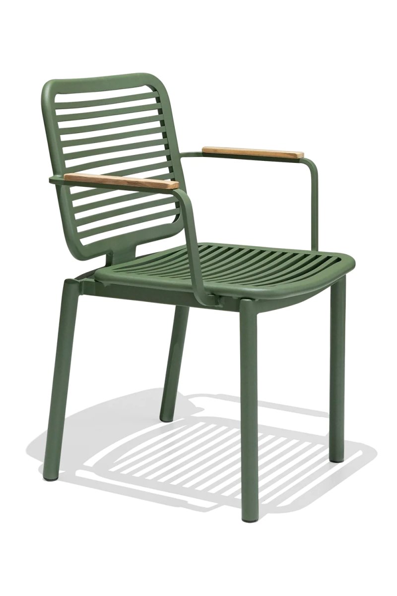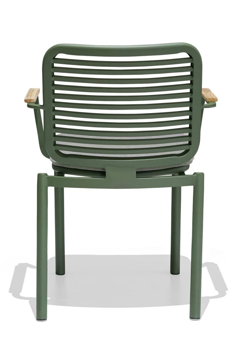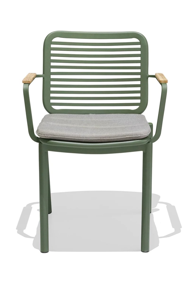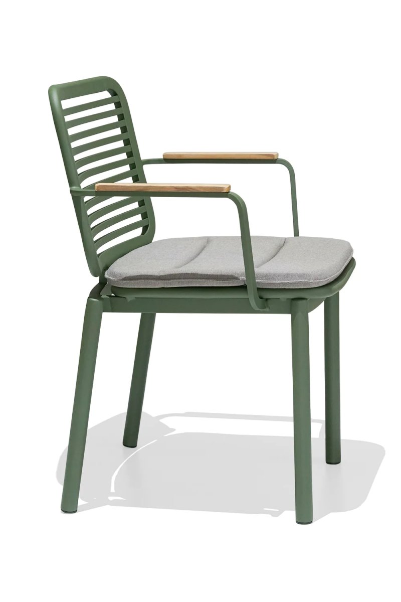 Прочное кресло Armona для обеденной зоны на открытом воздухе создано, чтобы выдержать испытание временем. Его рама изготовлена из алюминия с порошковым покрытием, что обеспечивает долговечность. Кресло оснащено элегантными подлокотниками из тикового дерева и съемной подушкой, что делает его невосприимчивым к различным погодным условиям.
