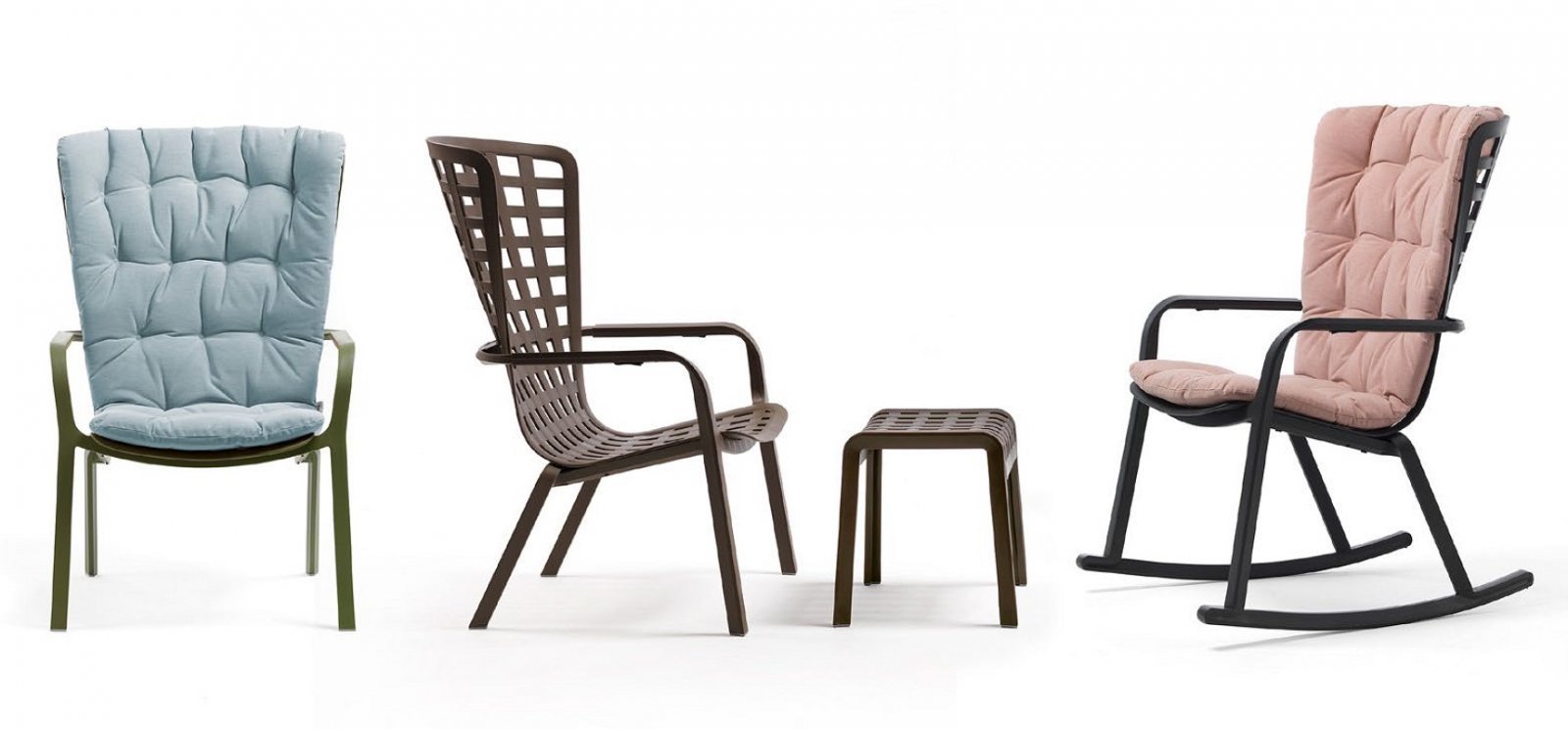 Folio - это инновационное расслабляющее кресло, регулируемое в двух положениях, предназначенное для уличного использования. Изготовлено из перерабатываемой стекловолоконной смолы. Кресло Folio может быть выполнено с фиксированным основанием либо на ножках-полозьях как романтическое кресло-качалка. Основная конструкция кресла сделана из одного перфорированного стекловолоконного листа (отсюда и название на итальянском языке "folio"), украшенного квадратным узором. Особенностью кресла является его изогнутый дизайн, не требующий каких-либо связующих элементов между сидением и спинкой. Кресло Folio полностью изготовлено в Италии - от дизайна до изготовления пресс-форм и производства.