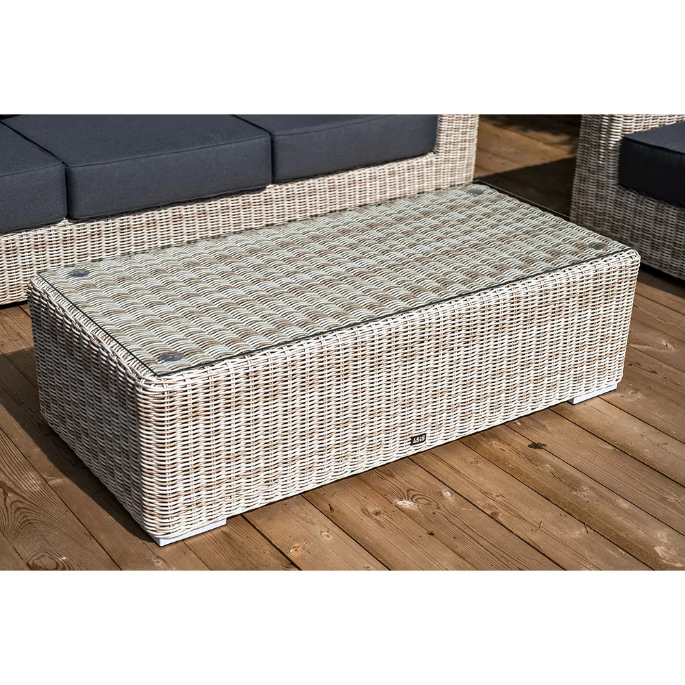 Поверхность плетеного столика представляет столешница из закаленного стекла – 5 мм.