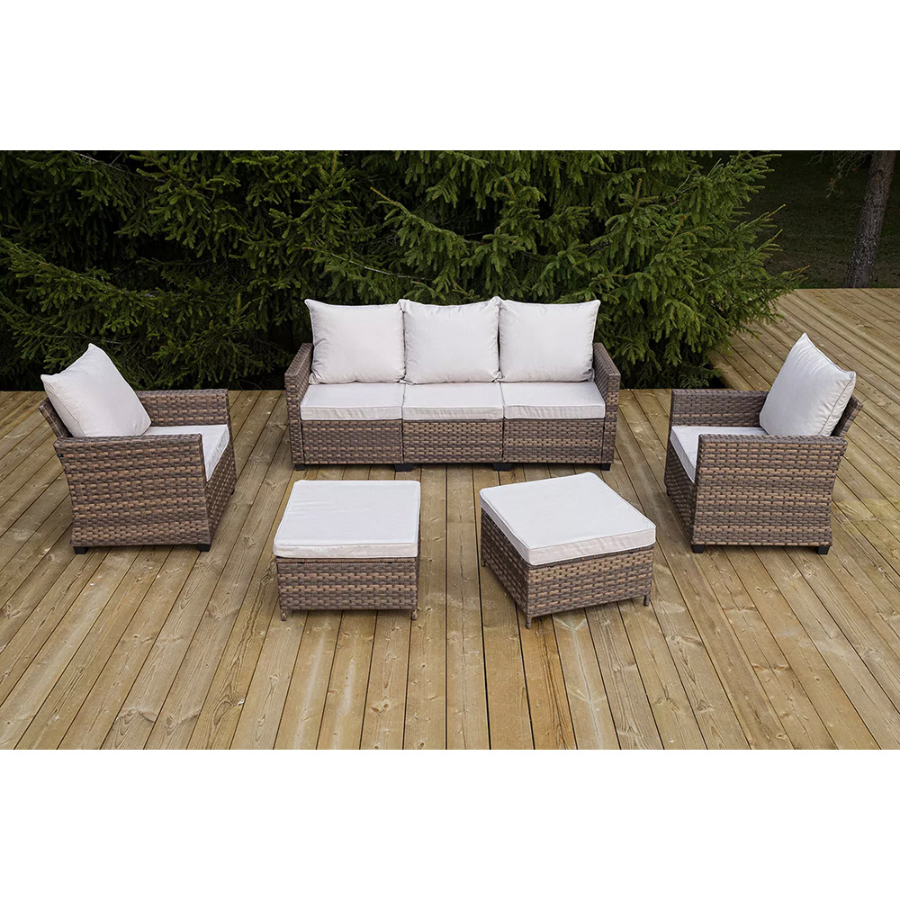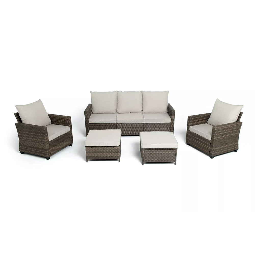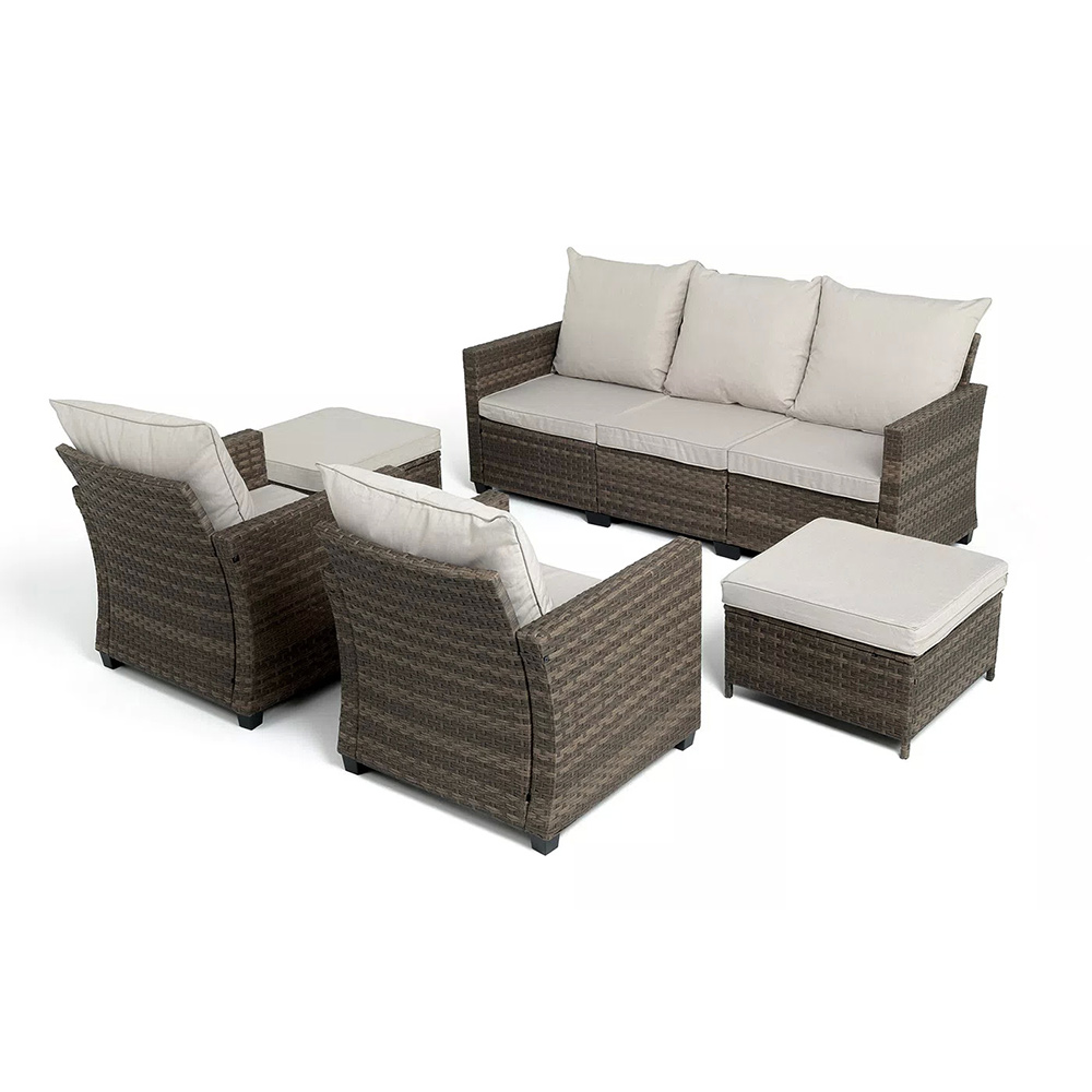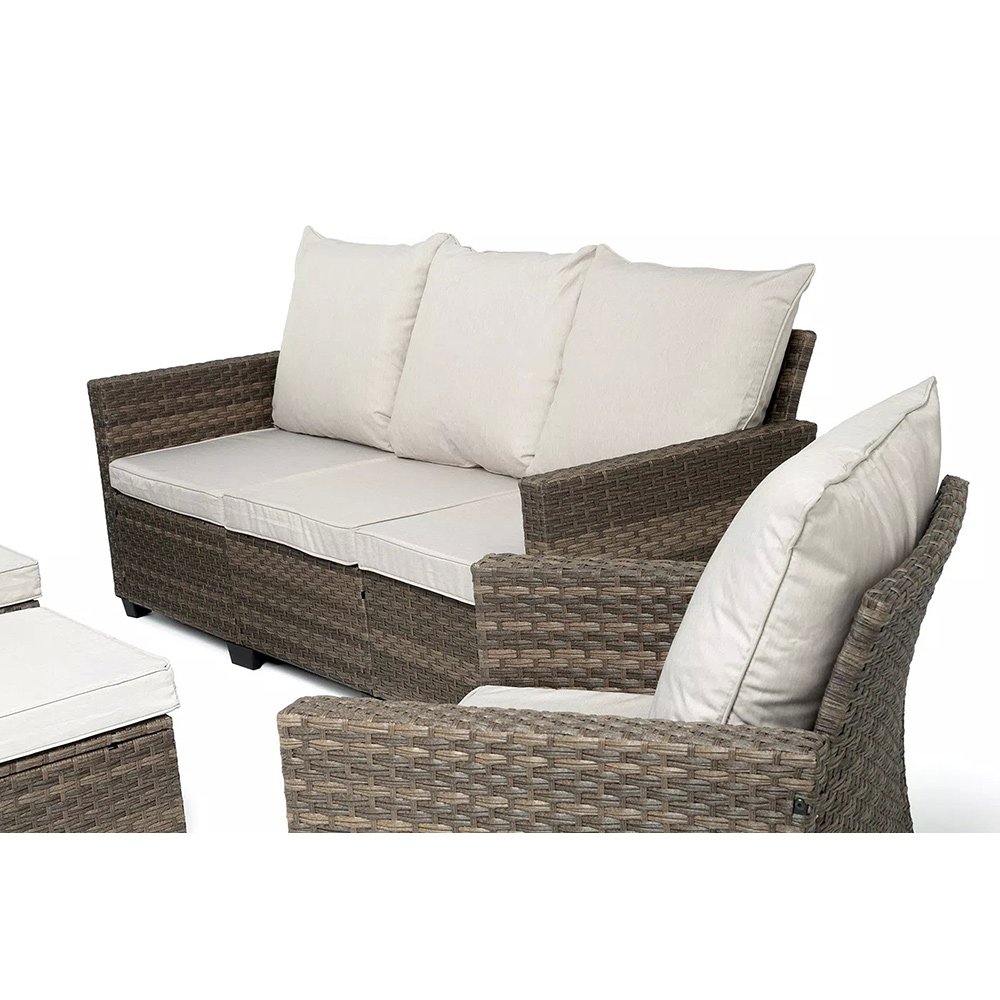 Вместительная лаунж-зона «Бостон» состоит из трехместного дивана, двух кресел и двух пуфов.