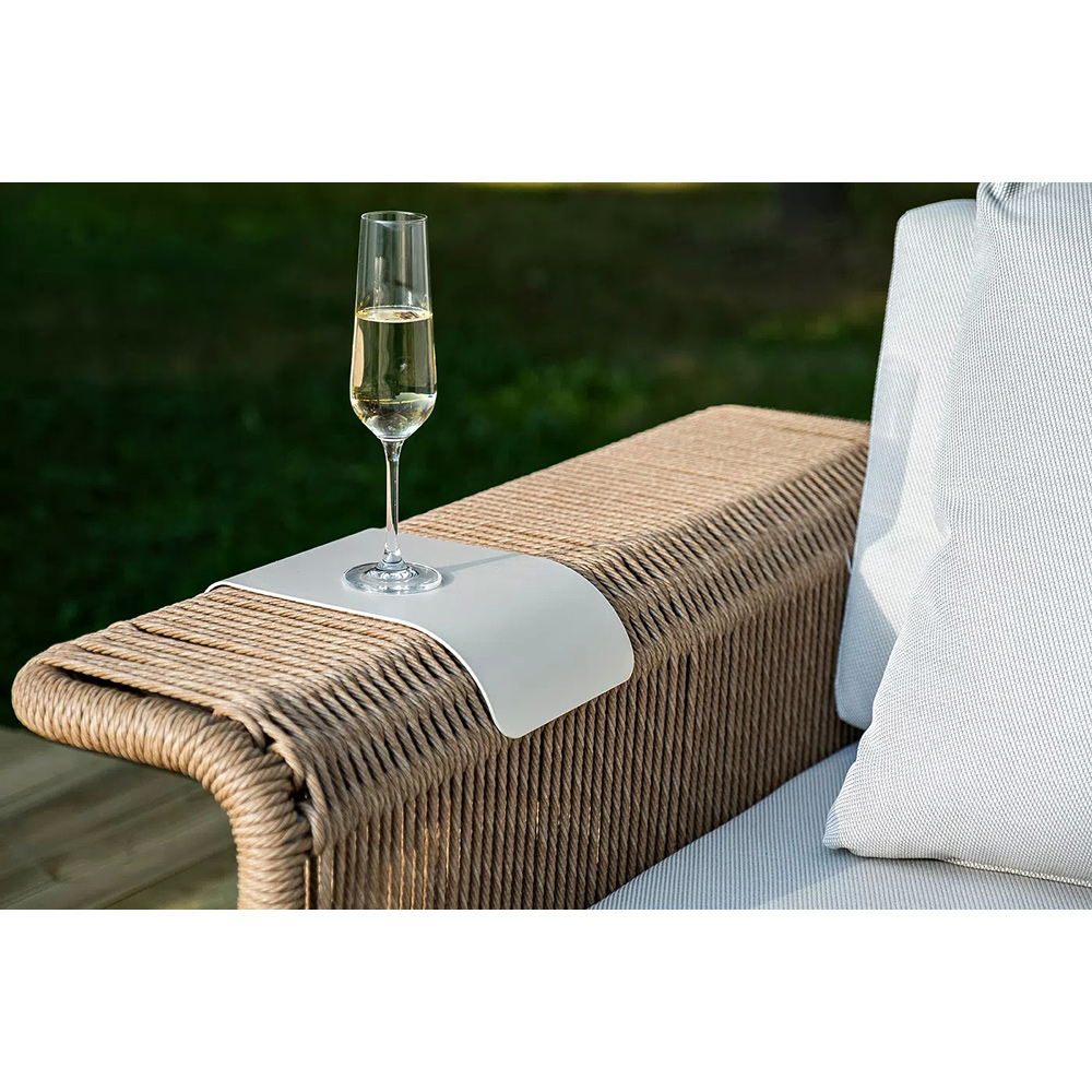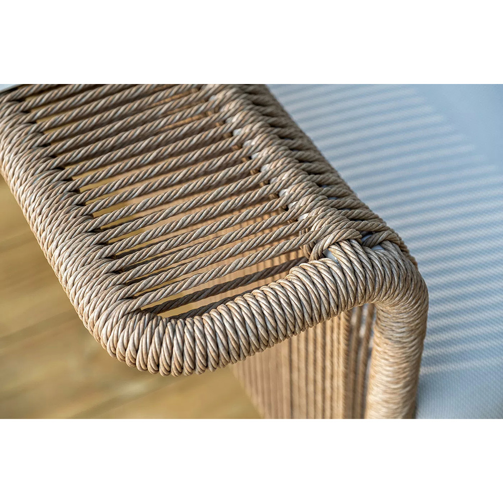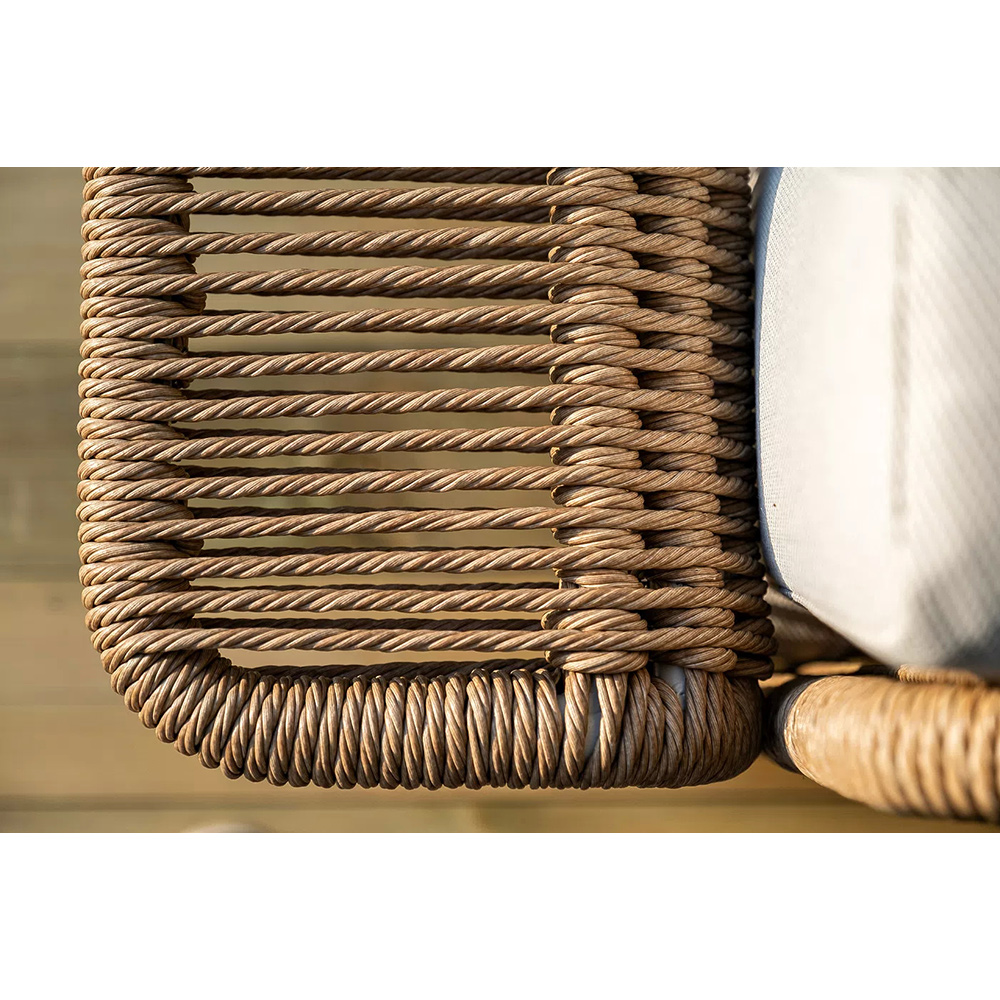 Комплект выполнен из алюминиевого каркаса, окрашенного порошковой износостойкой краской. Оттенок - «слоновая кость». Искусственный ротанг соломенного цвета украшает мебель в качестве круглого ручного плетения - 7 мм.