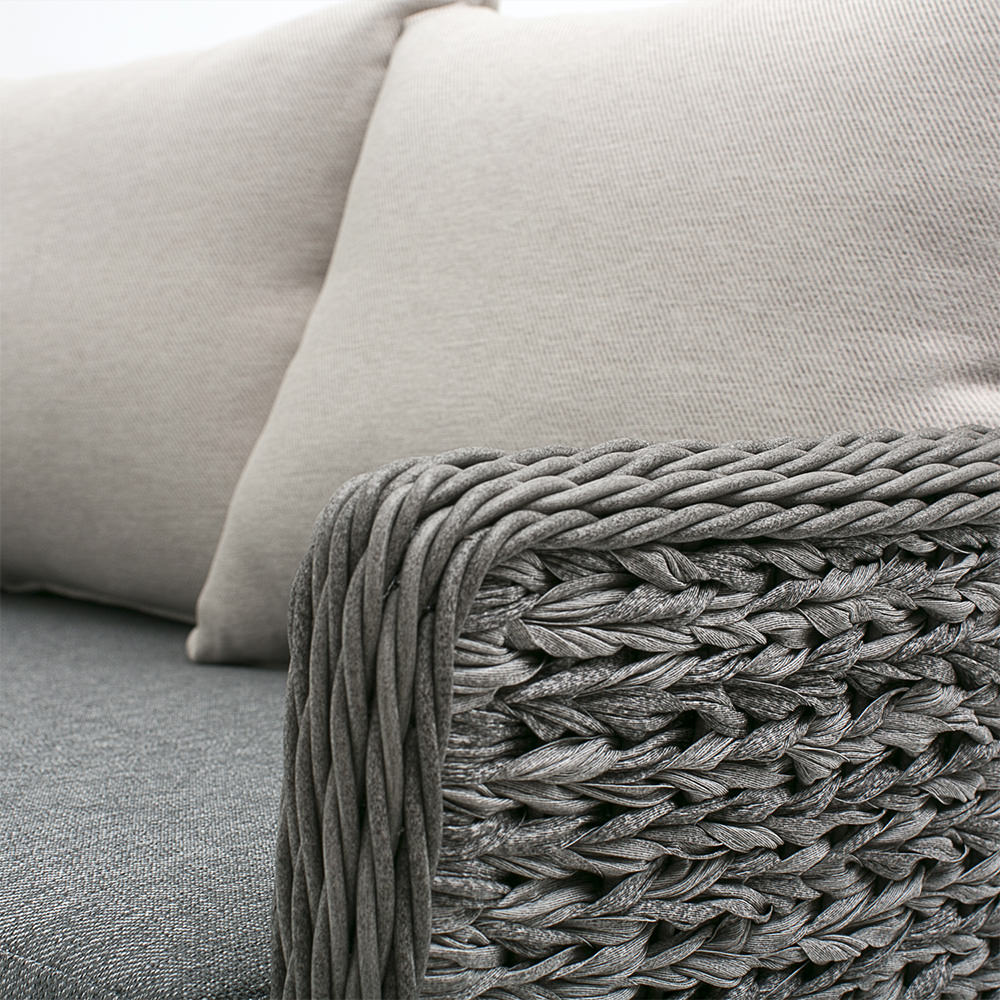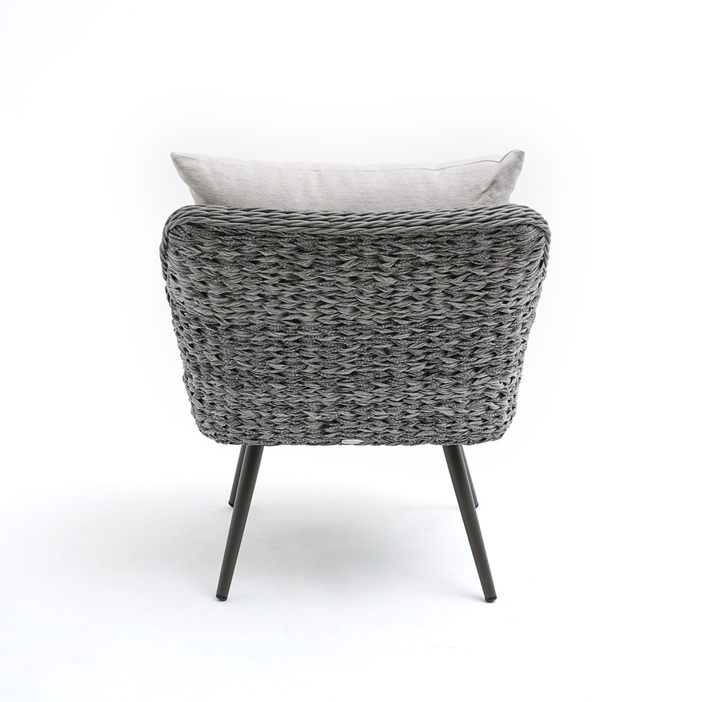 Новинка 2019 года от Испанского бренда Mi Casa, коллекция Bueno - дословно переводится как замечательный. Поистине превосходное сочетание стилей идеально отражены в этой лаунж зоне. Фактура и оттенок плетения полностью повторяет по структуре тканный материал, при этом изготовленный из высокопрочного искусственного ротанга класса ААА, может выдерживать любые воздействия агрессивной окружающей среды. Такой материал не выцветает, не рвется не растягивается с годами интенсивного использования. Дополняет ансамбль из дивана и двух кресел элегантный журнальный столик со столешницей из закаленного стекла толщиной 5 мм. Все плетение выполнено в ручную с заботой о каждом изгибе. Каркас из алюминия покрытый всепогодной атмосферостойкой краской. Такой комплект будет прекрасным дополнением не только на вашем загородном участке, но и в внутри дома. В комплектации к двум креслам и дивану идут удобные подушки, чехлы которых изготовлены из ткани с влагоотталкивающей пропиткой, а так же для вашего удобства они снабжены молниями и соответственно съемными чехлами для легкой стирки.
