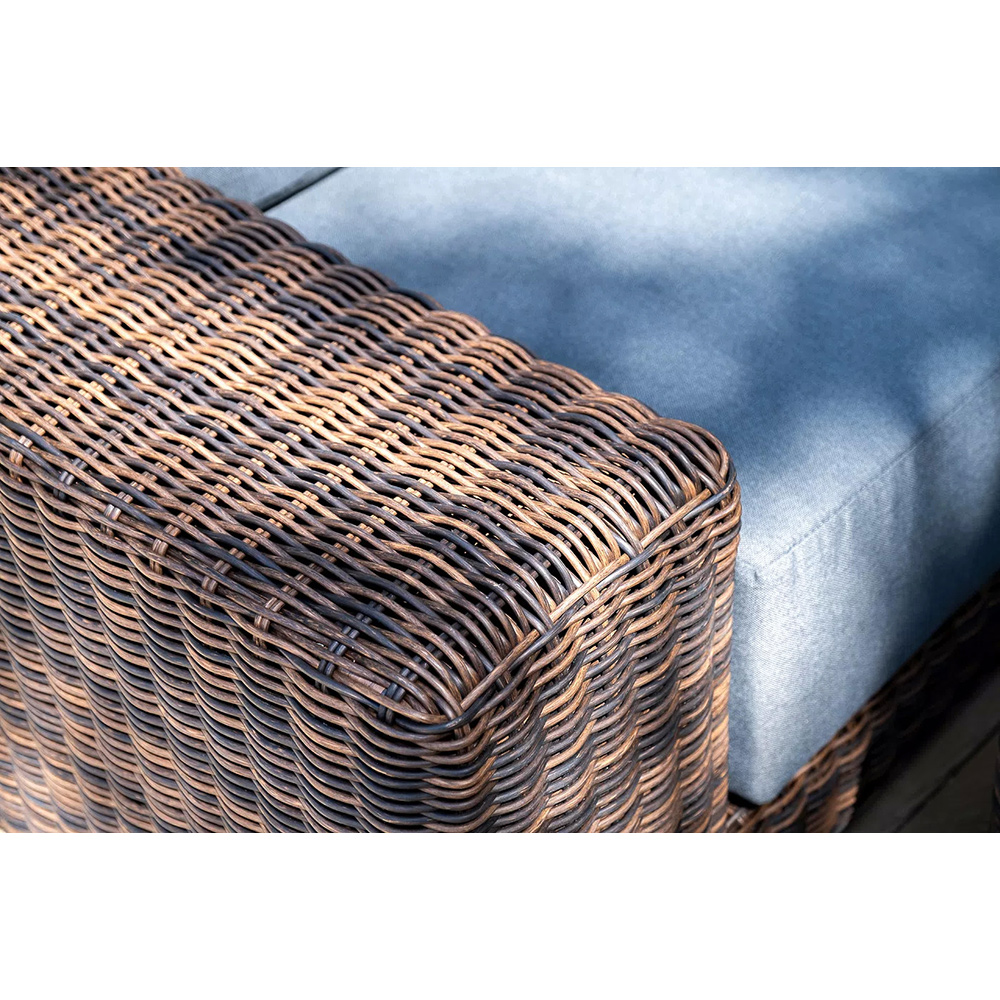 При изготовлении каркаса всех составляющих комплекта используется высокопрочный алюминий. Он дополнен круглым плетением из искусственного ротанга. Цвет – коричневый.