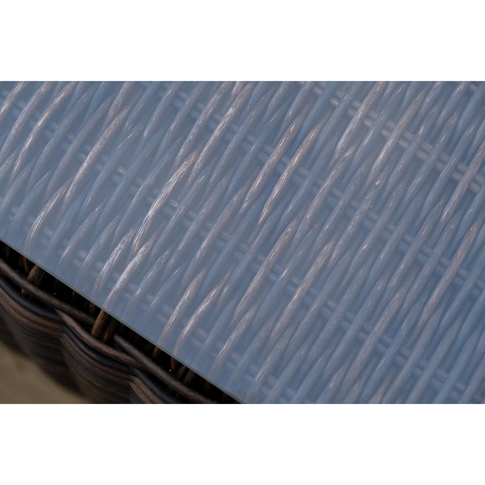 Плетеный столик имеет стеклянную столешницу, изготовленную из прочного закаленного стекла, толщина - 5 мм.