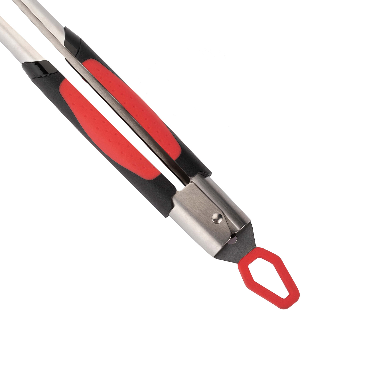 Классические стальные щипцы и лопатка с прорезиненной ручкой и надежным механизмом фиксации.