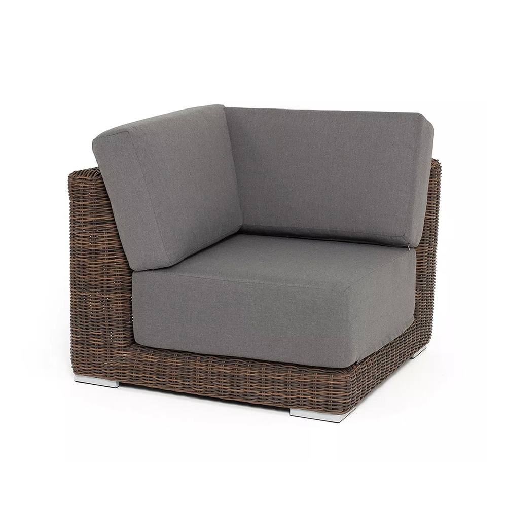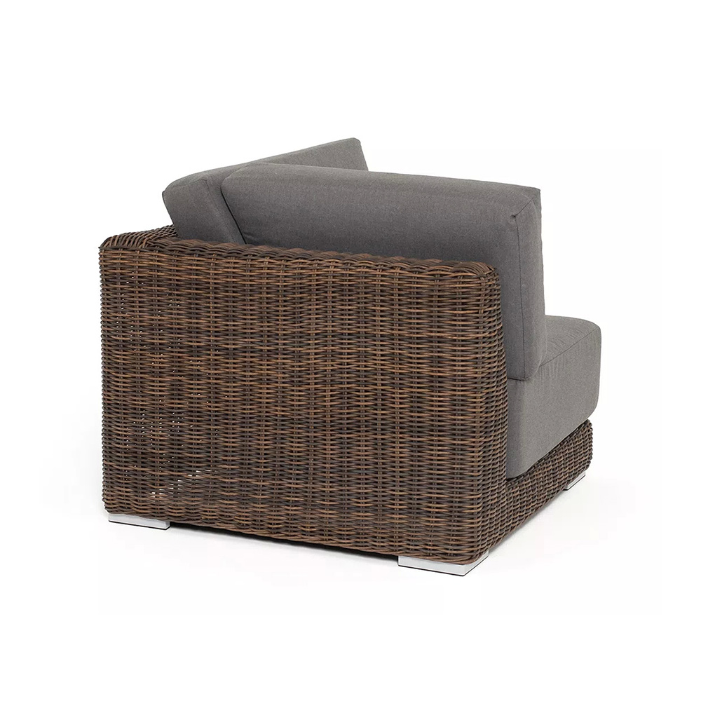 Угловой модуль из круглого искусственного ротанга «Капри» является одним из звеньев для создания лаунж зоны по индивидуальным потребностям.