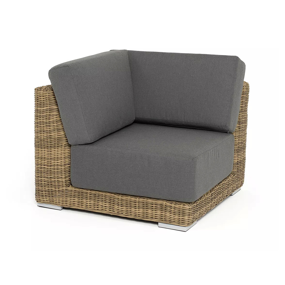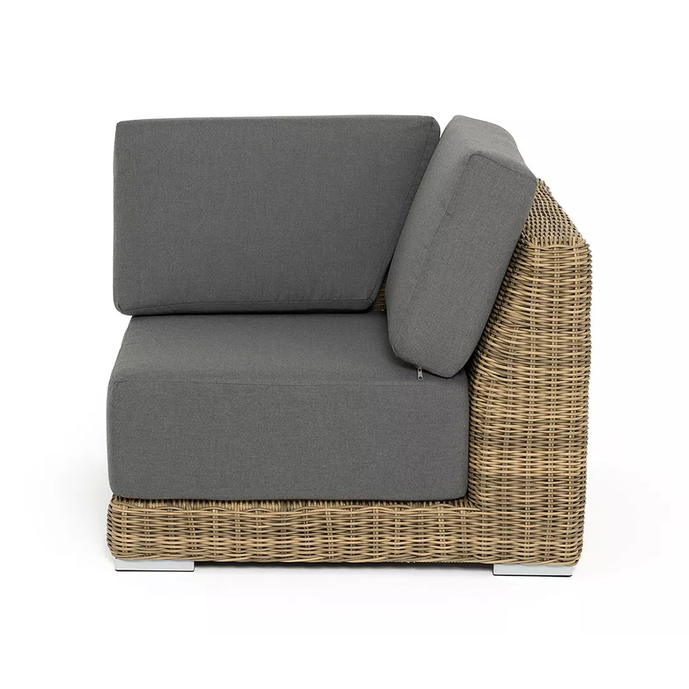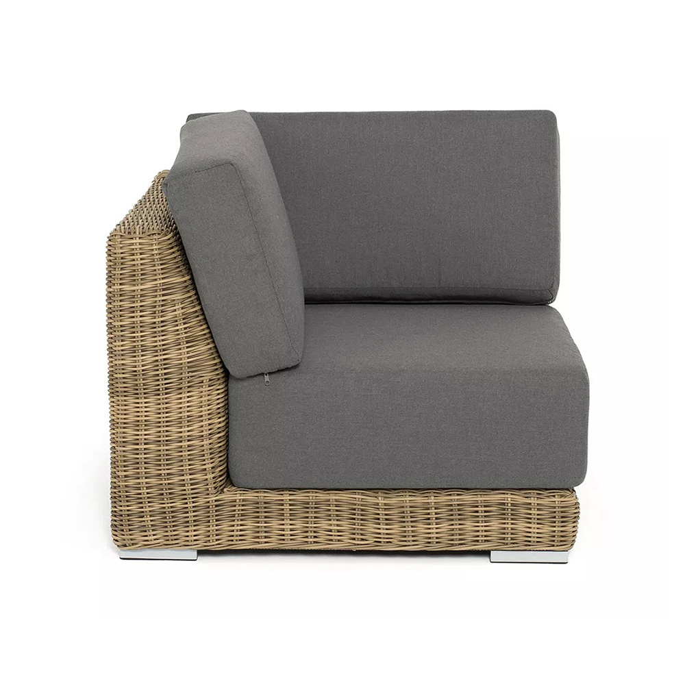 Угловой модуль из круглого искусственного ротанга «Капри» является одним из звеньев для создания лаунж зоны по индивидуальным потребностям.